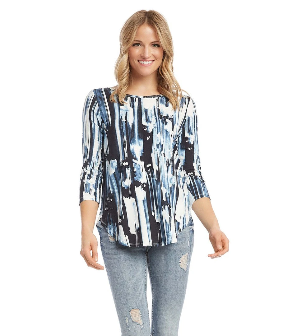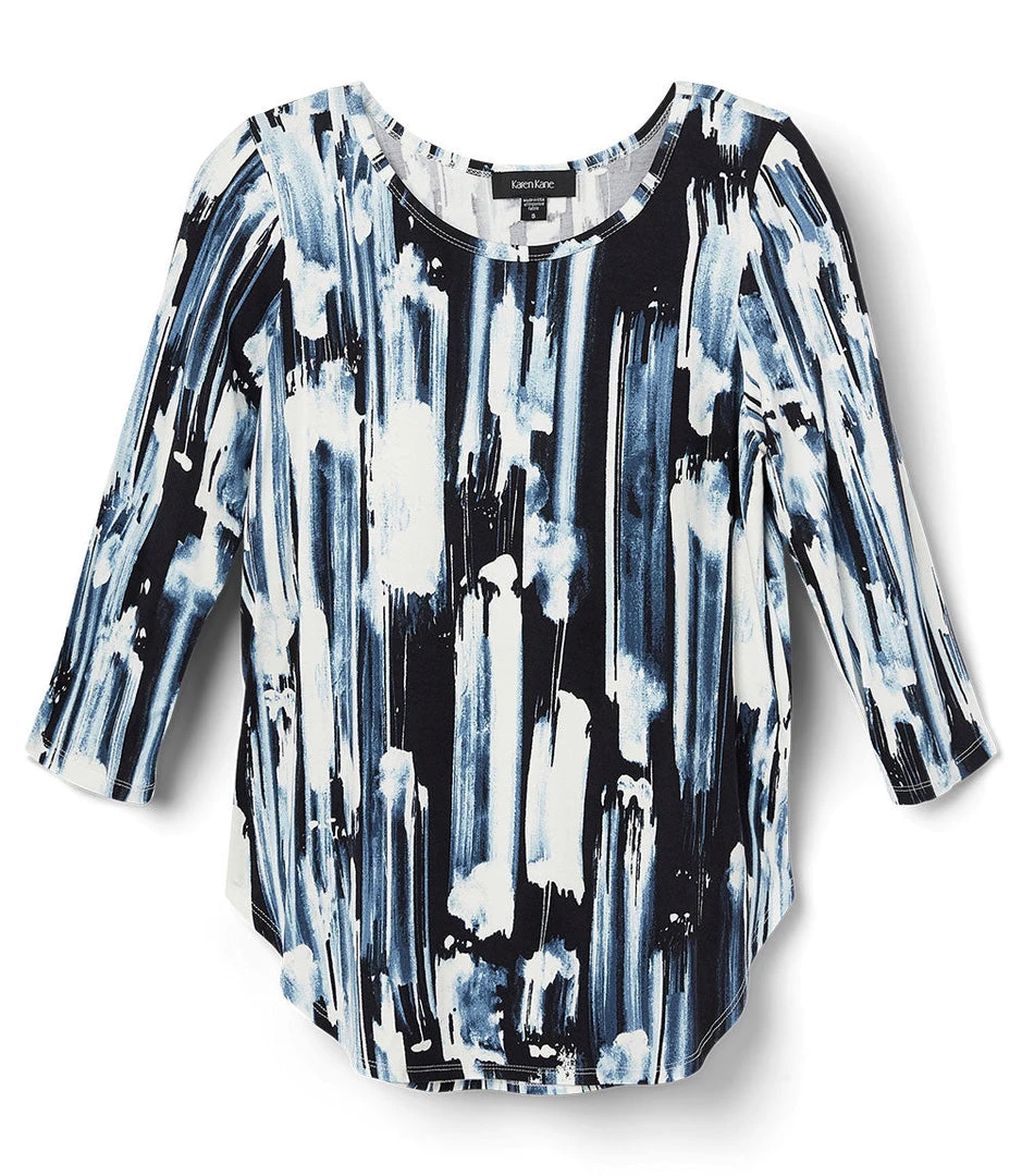 - Elevate your casual wardrobe with the Karen Kane 3/4 Sleeve Shirttail Top. This chic top features a unique shirttail hem and 3/4 sleeves, offering a perfect blend of style and comfort.