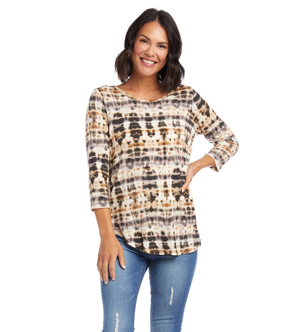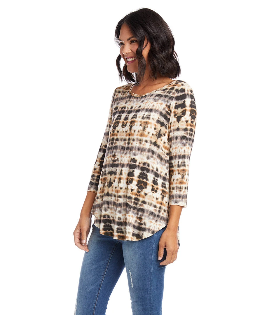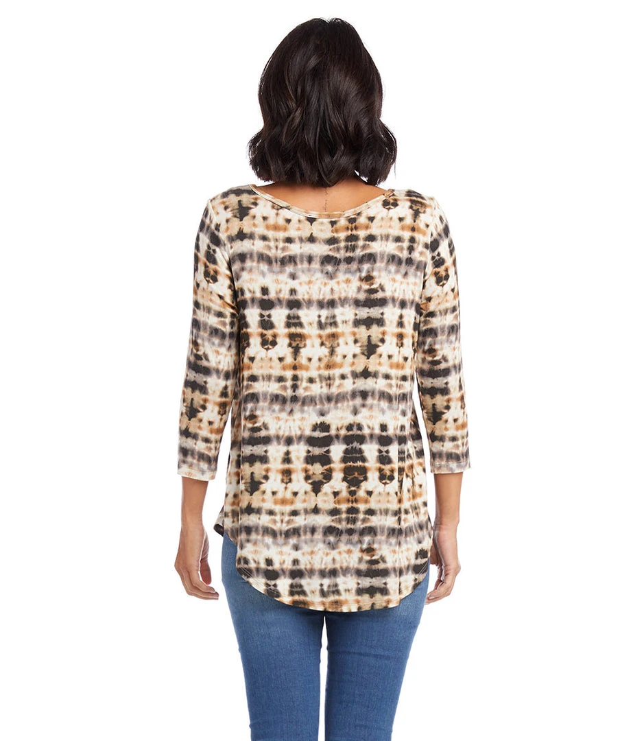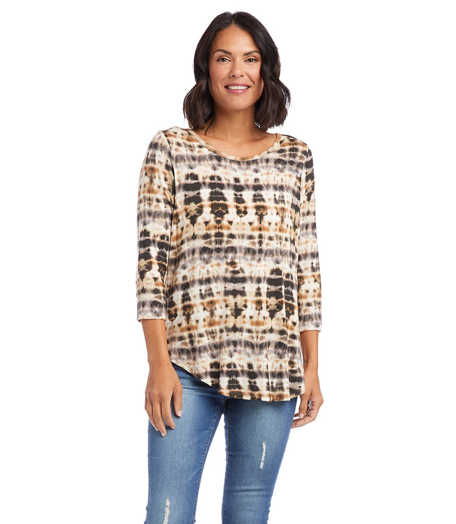- Elevate your casual wardrobe with the Karen Kane 3/4 Sleeve Shirttail Top. Designed for comfort and style, this top features a flattering shirttail hem and 3/4 sleeves.