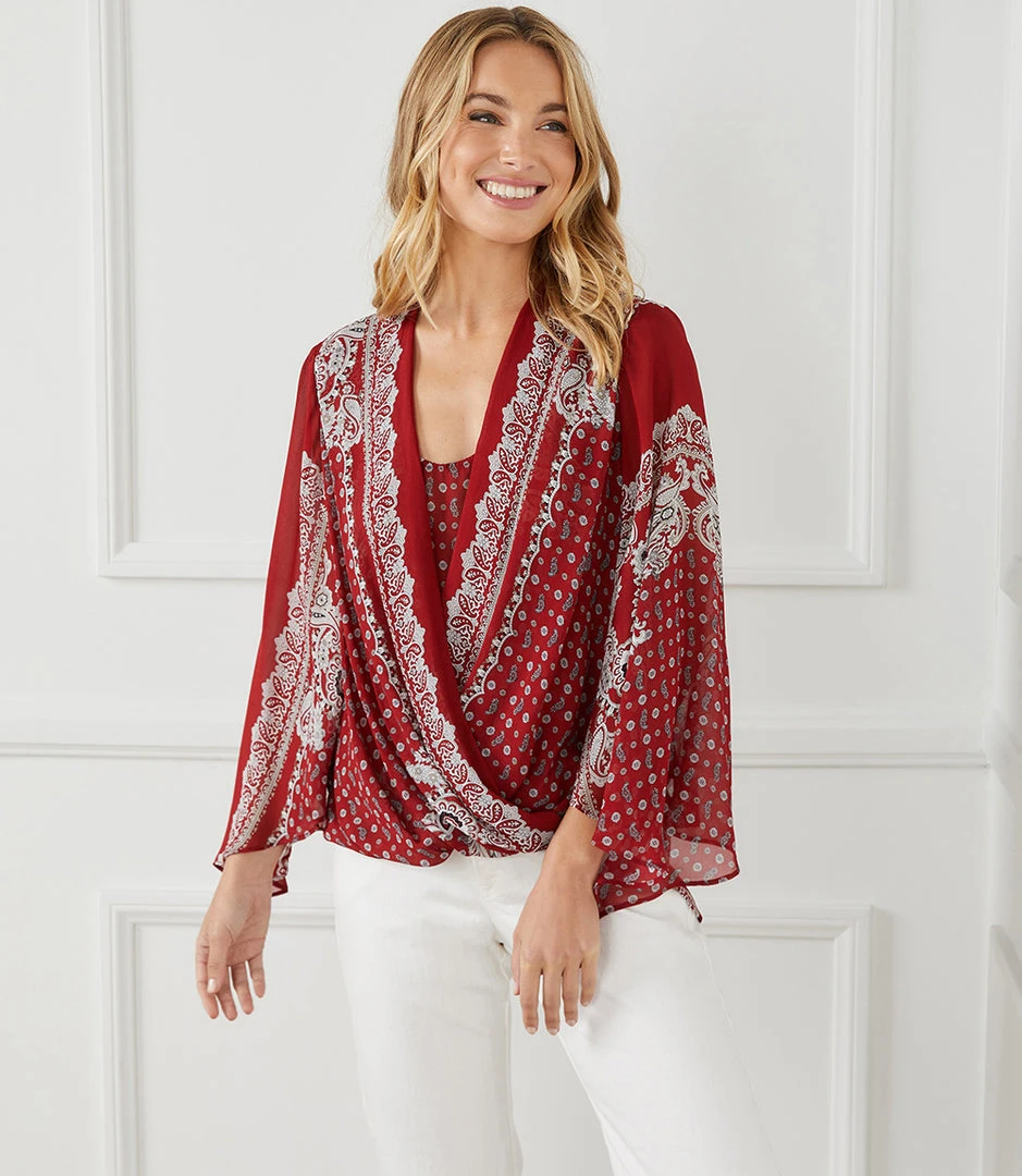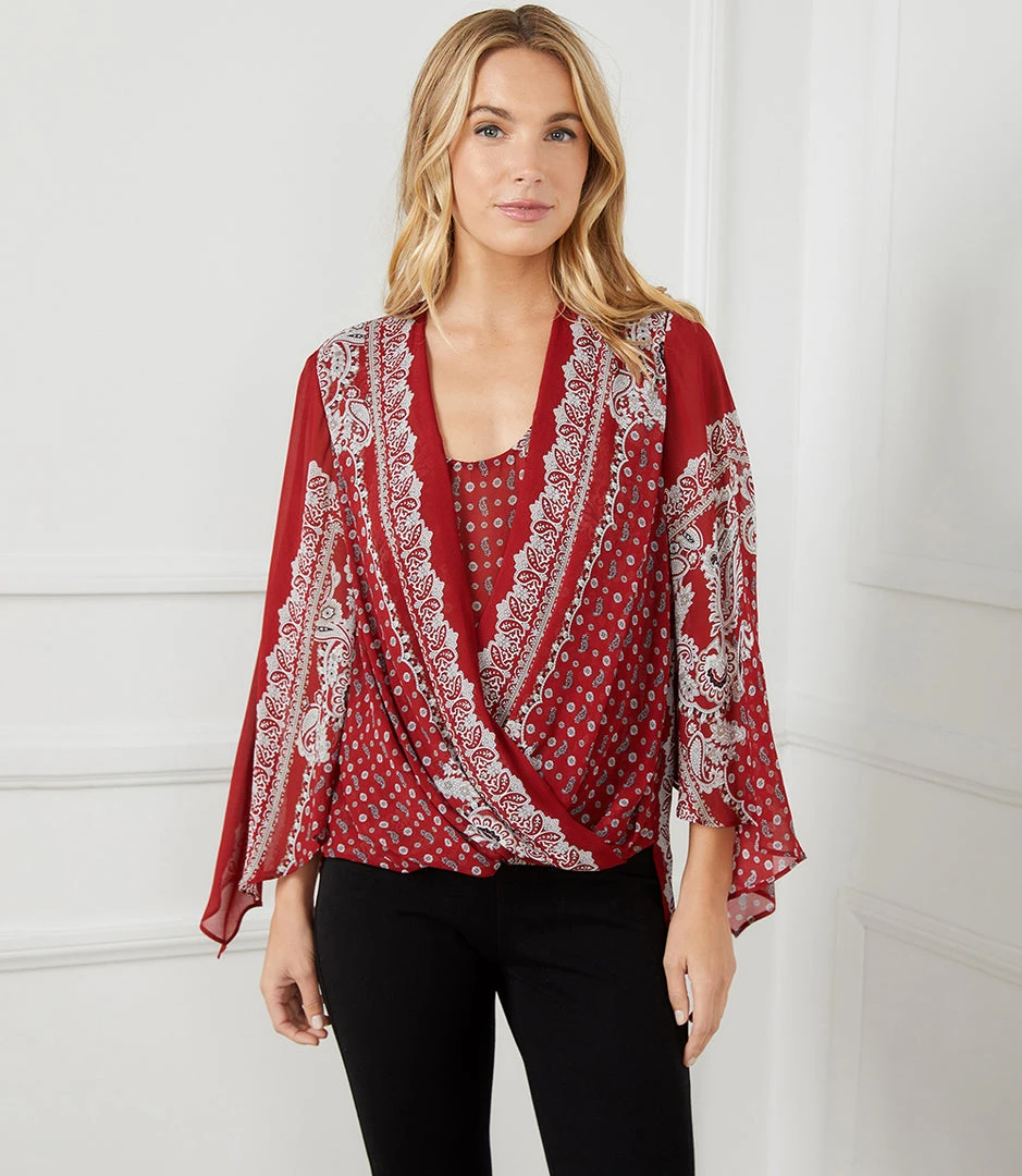 Karen Kane Angle Sleeve Crossover Top | Stylish Women’s Clothing Tops