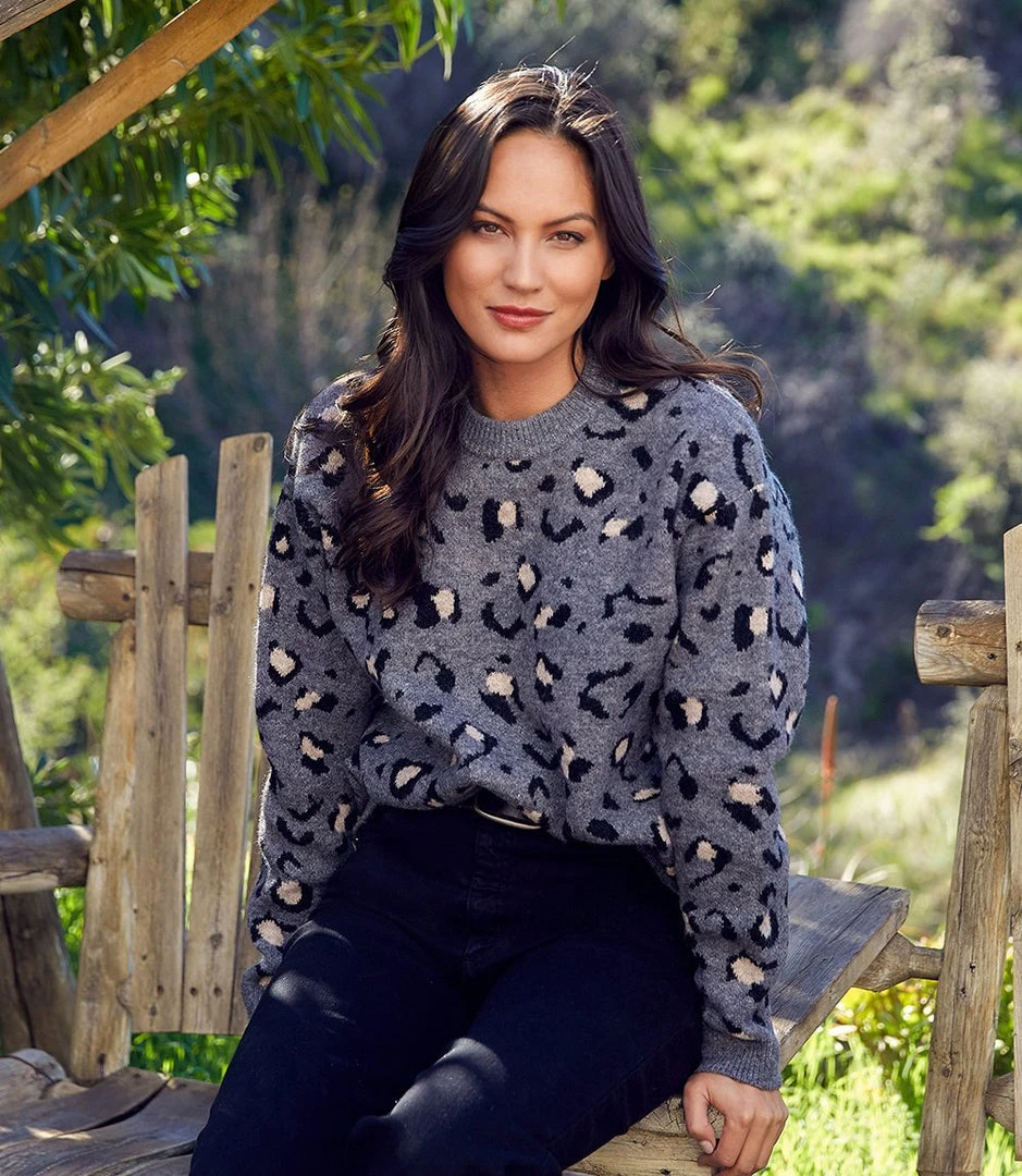 - Available in a variety of sizes, the Karen Kane Animal Jacquard Sweater is designed to fit perfectly, offering a flattering silhouette for all body types.