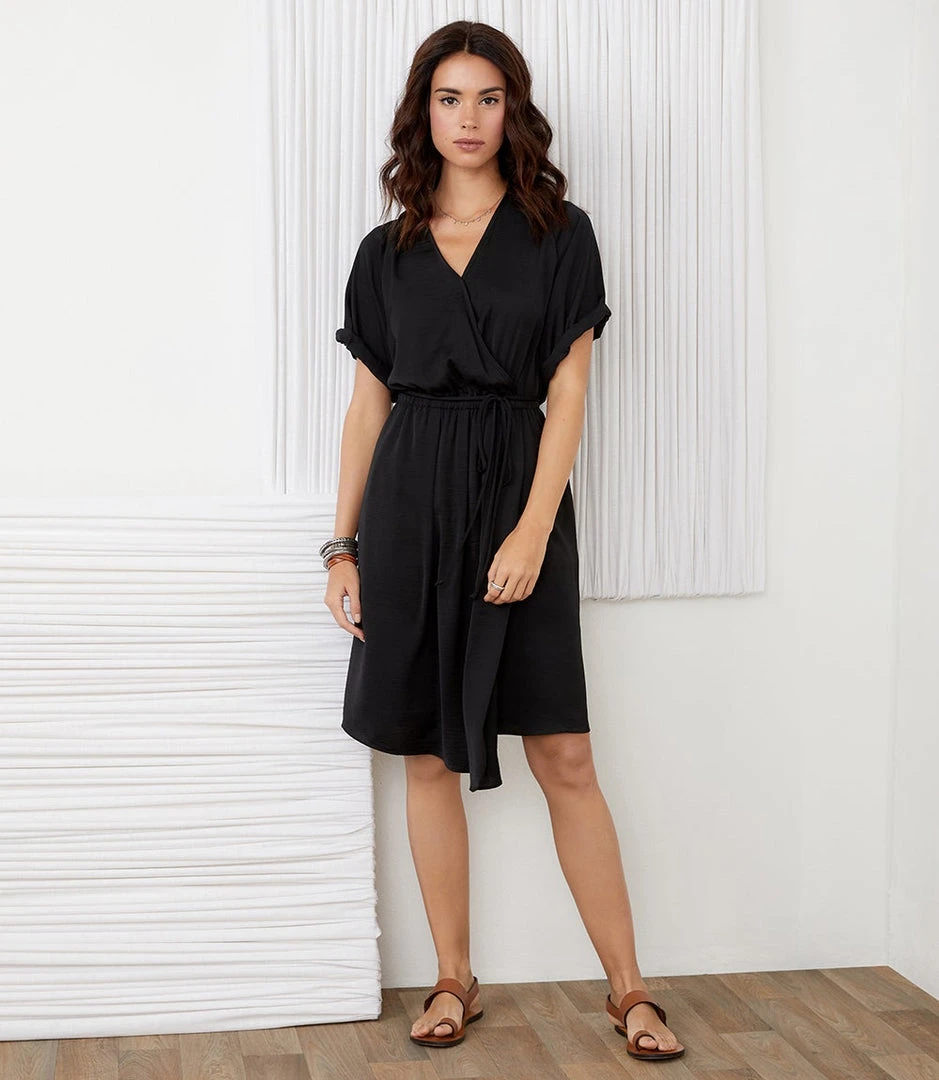 - This faux wrap dress features a flattering silhouette, soft fabric, and a versatile design that suits all body types. Available in multiple colors and sizes.