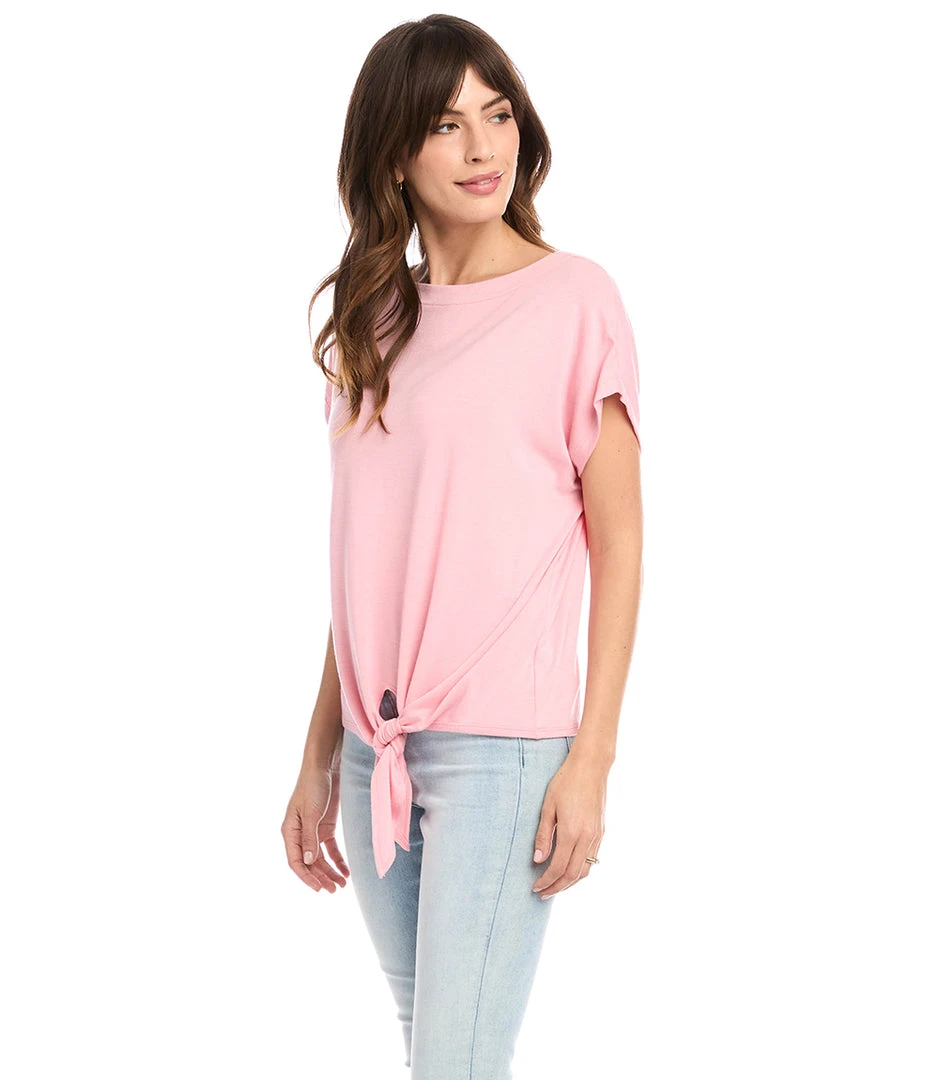 - Available in a range of colors, the Karen Kane Boatneck Tie Front Top is perfect for casual outings, office wear, or special occasions.