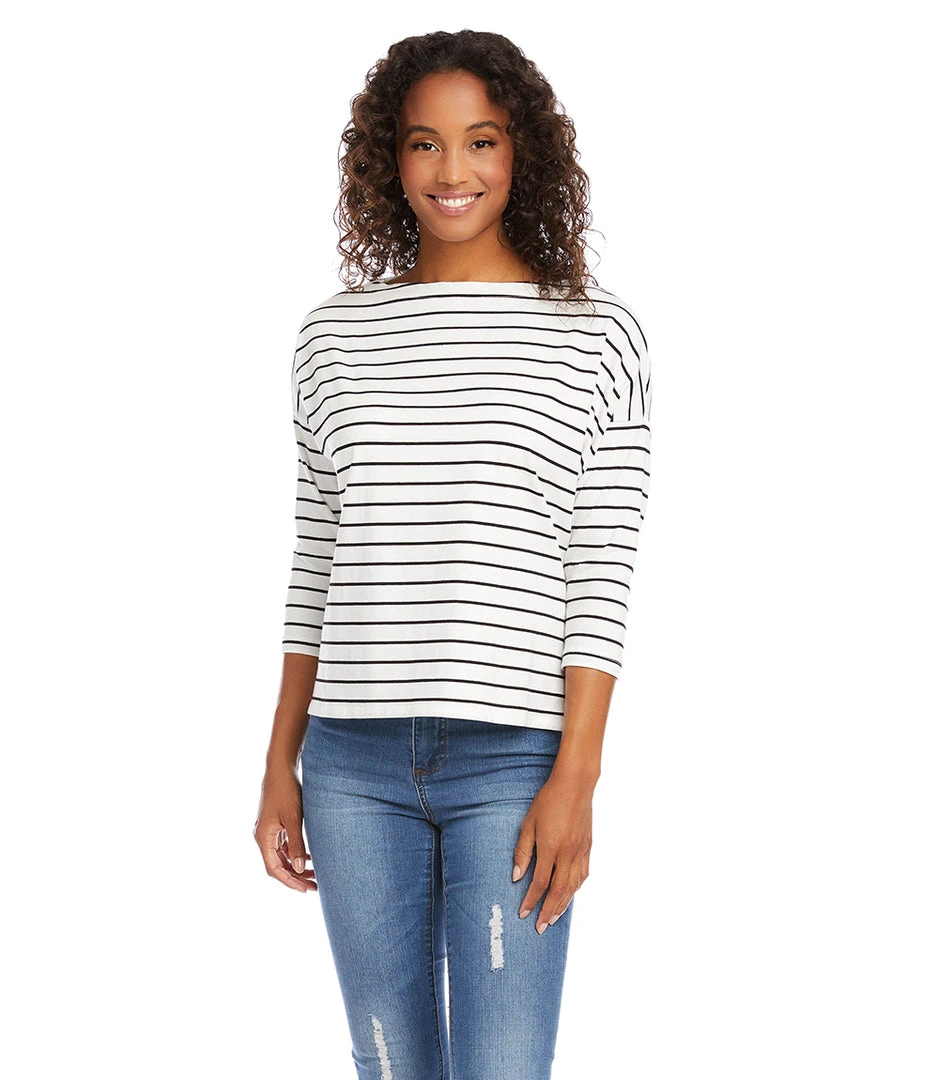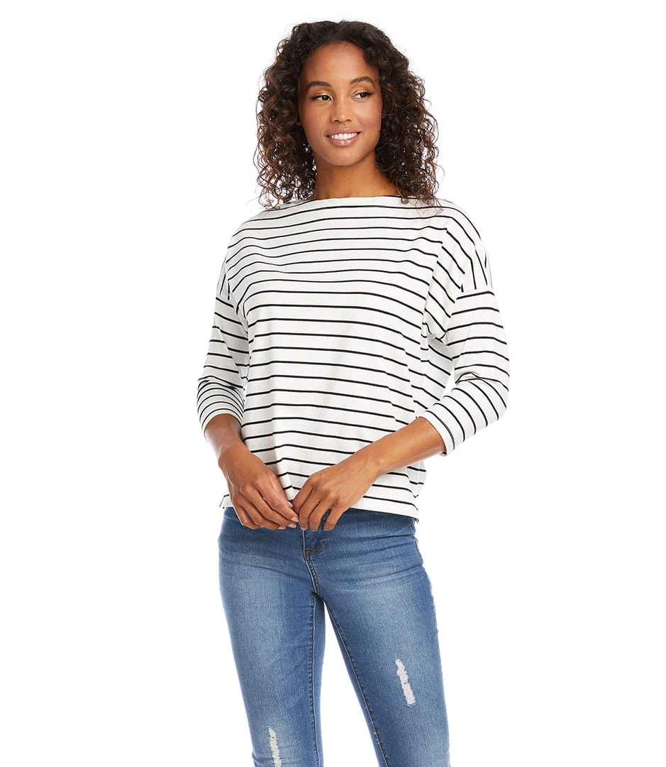 - Elevate your style with the Karen Kane Boatneck Top. This beautifully designed top features a classic boatneck neckline, offering a timeless and sophisticated look.