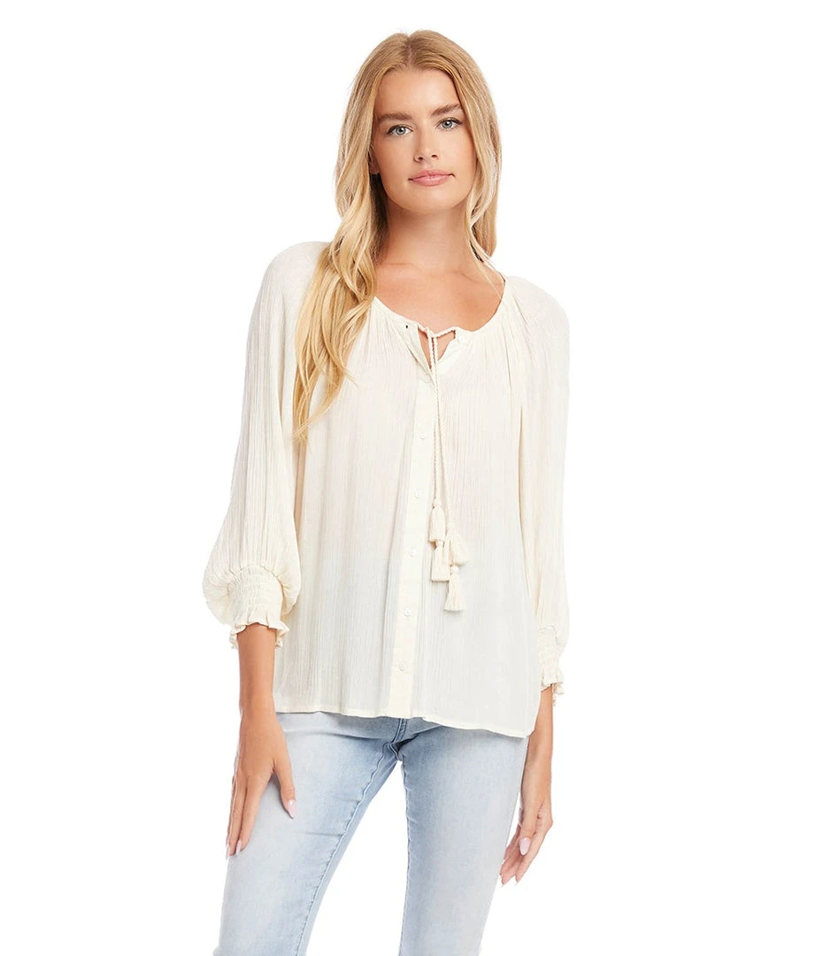 Karen Kane Button-Up Peasant Top | Stylish Women’s Blouse | Casual & Comfortable