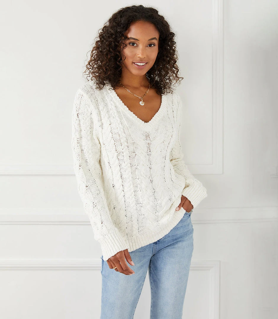 - This stylish pullover features a classic cable knit design, making it a versatile piece that pairs effortlessly with jeans, skirts, or leggings.