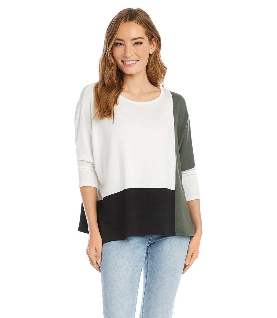 - Elevate your casual wardrobe with the Karen Kane Colorblock Top. Featuring a modern colorblock design, this top is perfect for adding a touch of style to your everyday look.