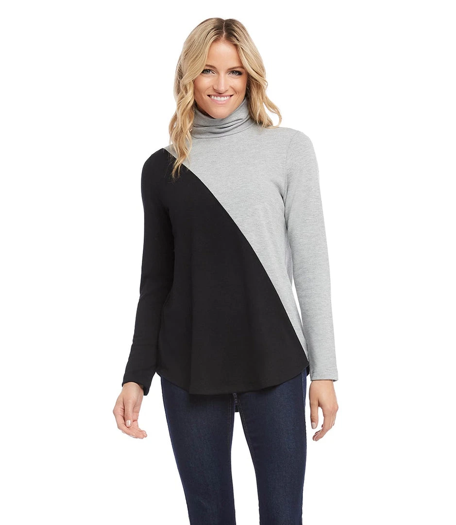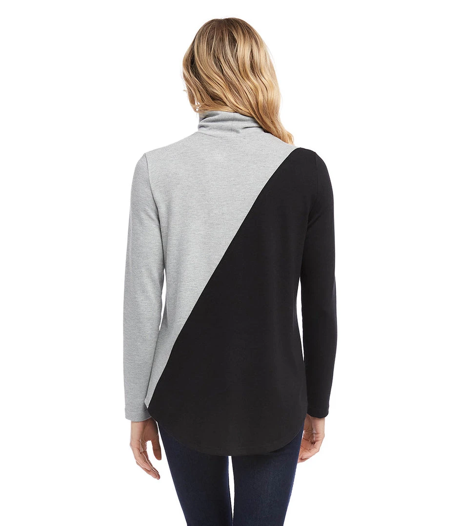- Elevate your wardrobe with the Karen Kane Contrast Turtleneck Sweater, designed for both style and comfort. This pullover features a chic contrast design that adds a modern touch to any outfit.