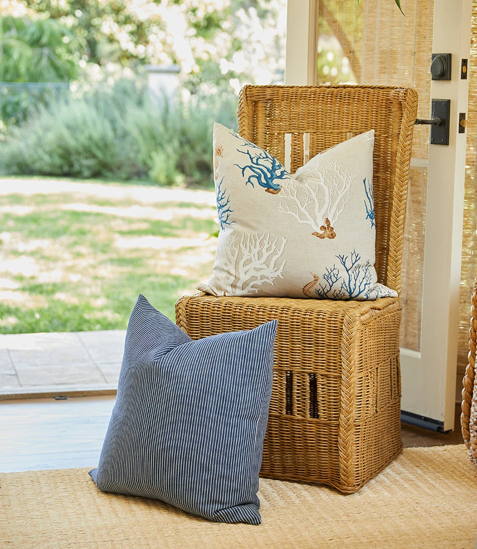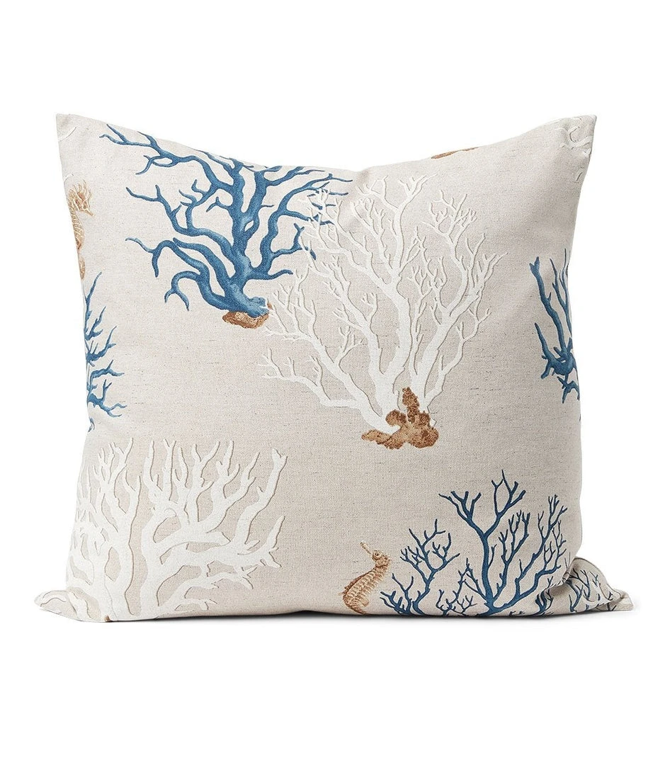 Earth hued coral stems give our textured linen pillow a nautical aesthetic. This plush pillow can be easily layered with natural toned pillows. Designed and crafted in Los Angeles. Includes pillow cover and feather insert. Due to the natural characteristics of this item, each piece will have variances, no two are the same.