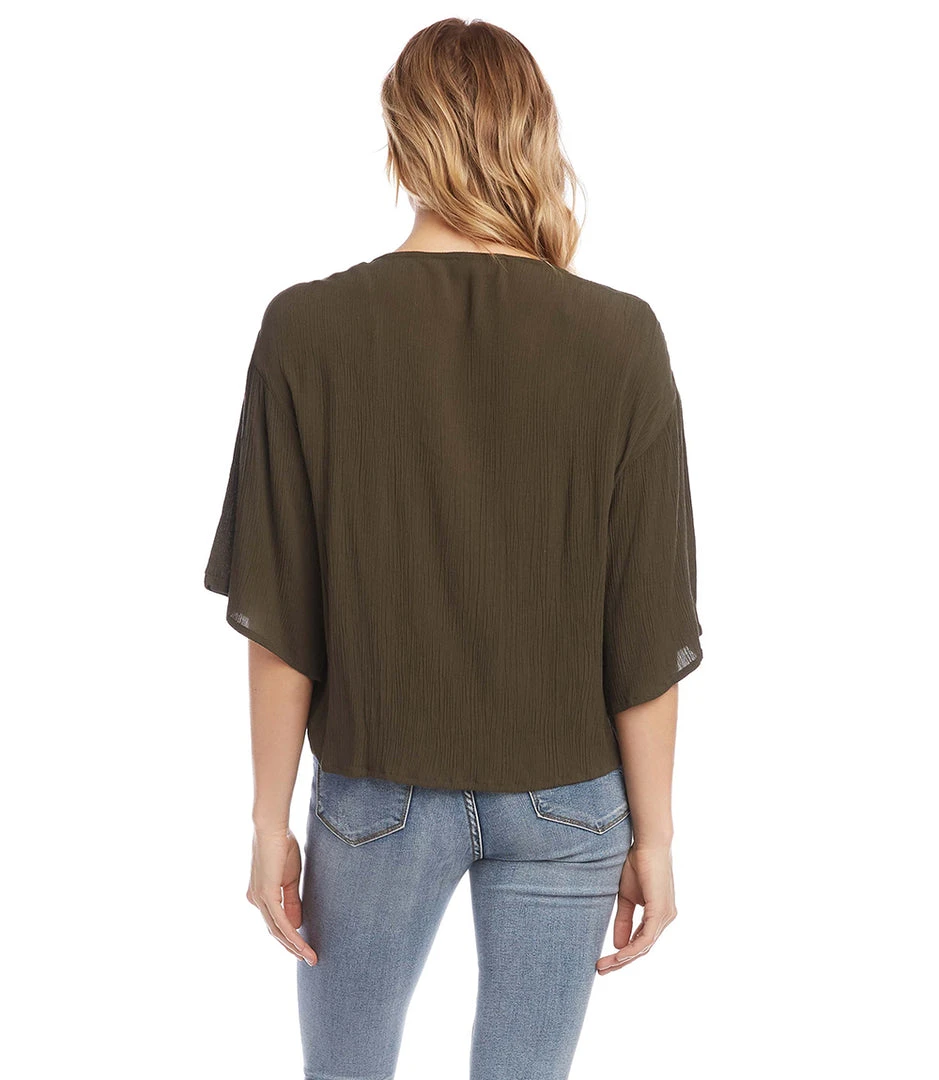 Karen Kane Crochet Neck Tie-Front Top – Stylish Women’s Summer Blouse