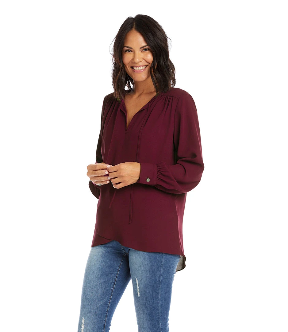 - Made from high-quality, soft fabric, the Karen Kane Crossover Tie Top ensures comfort and durability throughout the day.