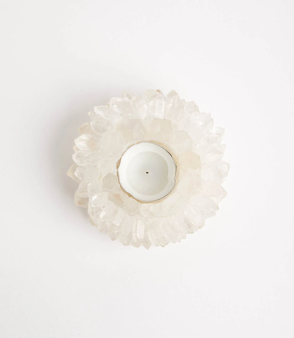 Set a calm and natural space with this zen crystal candleholder. It also makes for a special gift for a loved one. Each candle holder will vary slightly in size and characteristics.
