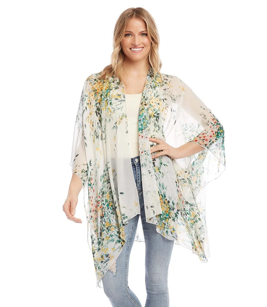 - Available in a range of elegant colors, the Karen Kane Drape Front Kimono is a must-have addition to your outerwear collection. Pair it with jeans, dresses, or skirts for a polished look.