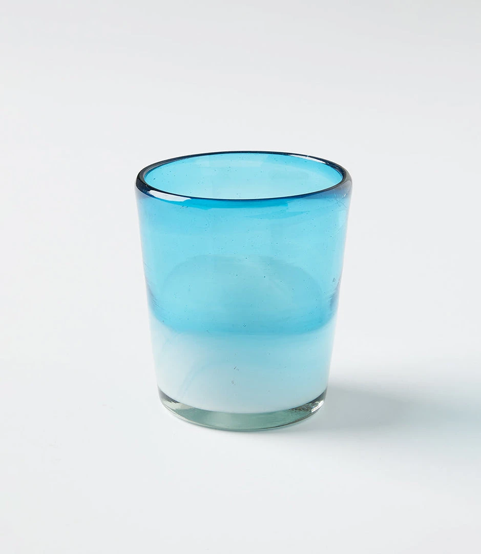 Made from recycled glass, this stunning juice glass will add a pop of color to your tablespace. Ethically made in Mexico by artisans using a handblown technique for a unique finish. Due to the natural characteristics of this item, each piece will have variances, no two are the same.