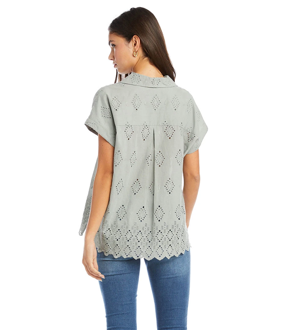 - Available in a range of sizes, the Karen Kane Extended Sleeve Eyelet Top ensures a perfect fit for every body type.
