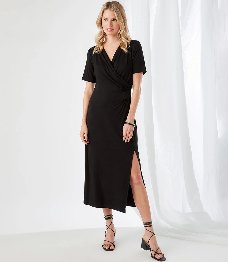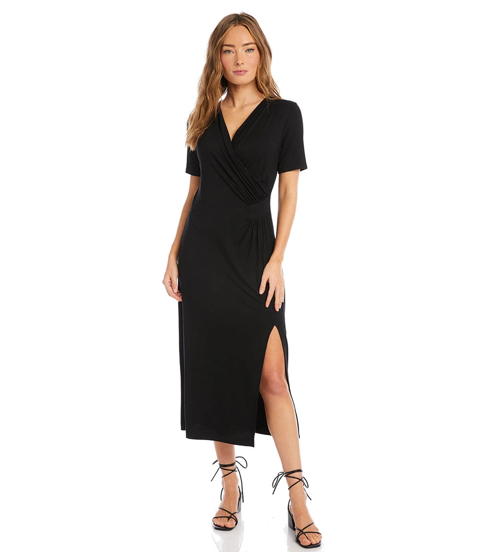 - Elevate your style with the Karen Kane Faux Wrap Midi Dress. This elegant dress features a flattering faux wrap design, midi length, and a comfortable fit, making it ideal for any occasion.