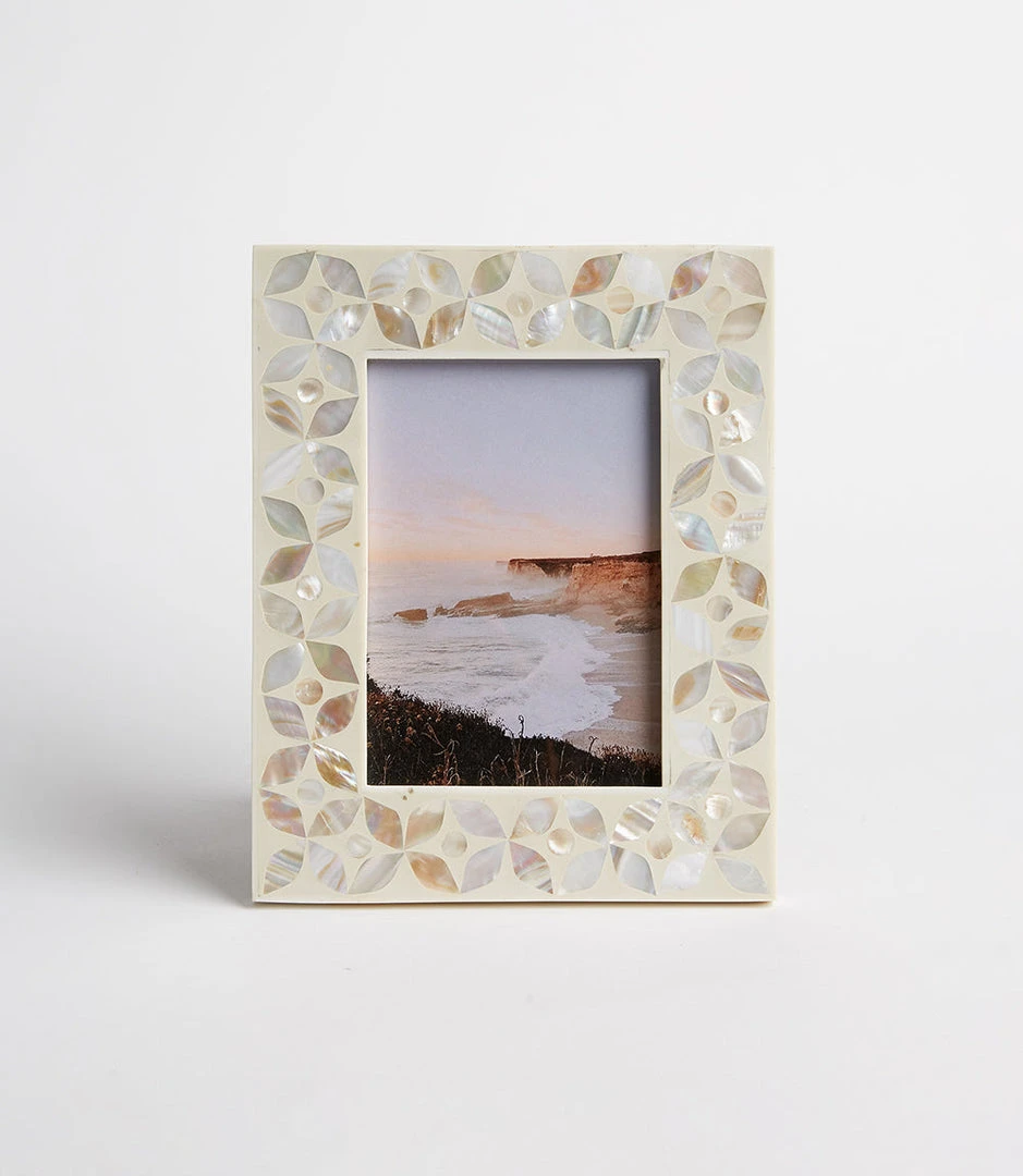 - The Karen Kane Floral Mother Of Pearl Picture Frame is available in a standard size, making it perfect for displaying your favorite 4×6 photos. It’s an ideal gift for weddings, anniversaries, or special occasions.