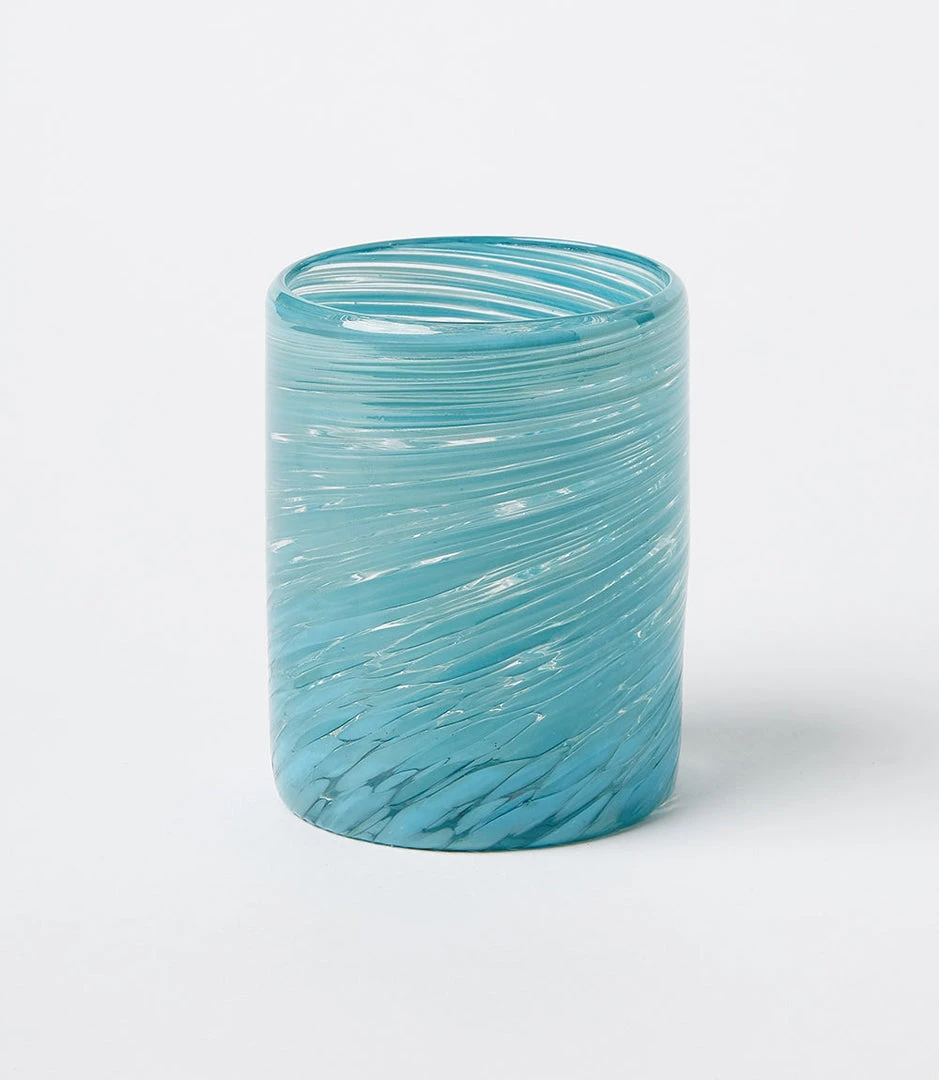 Made from recycled glass, this stunning juice glass will add a pop of color to your tablespace. Ethically made in Mexico by artisans using a handblown technique for a unique finish. Due to the natural characteristics of this item, each piece will have variances, no two are the same.