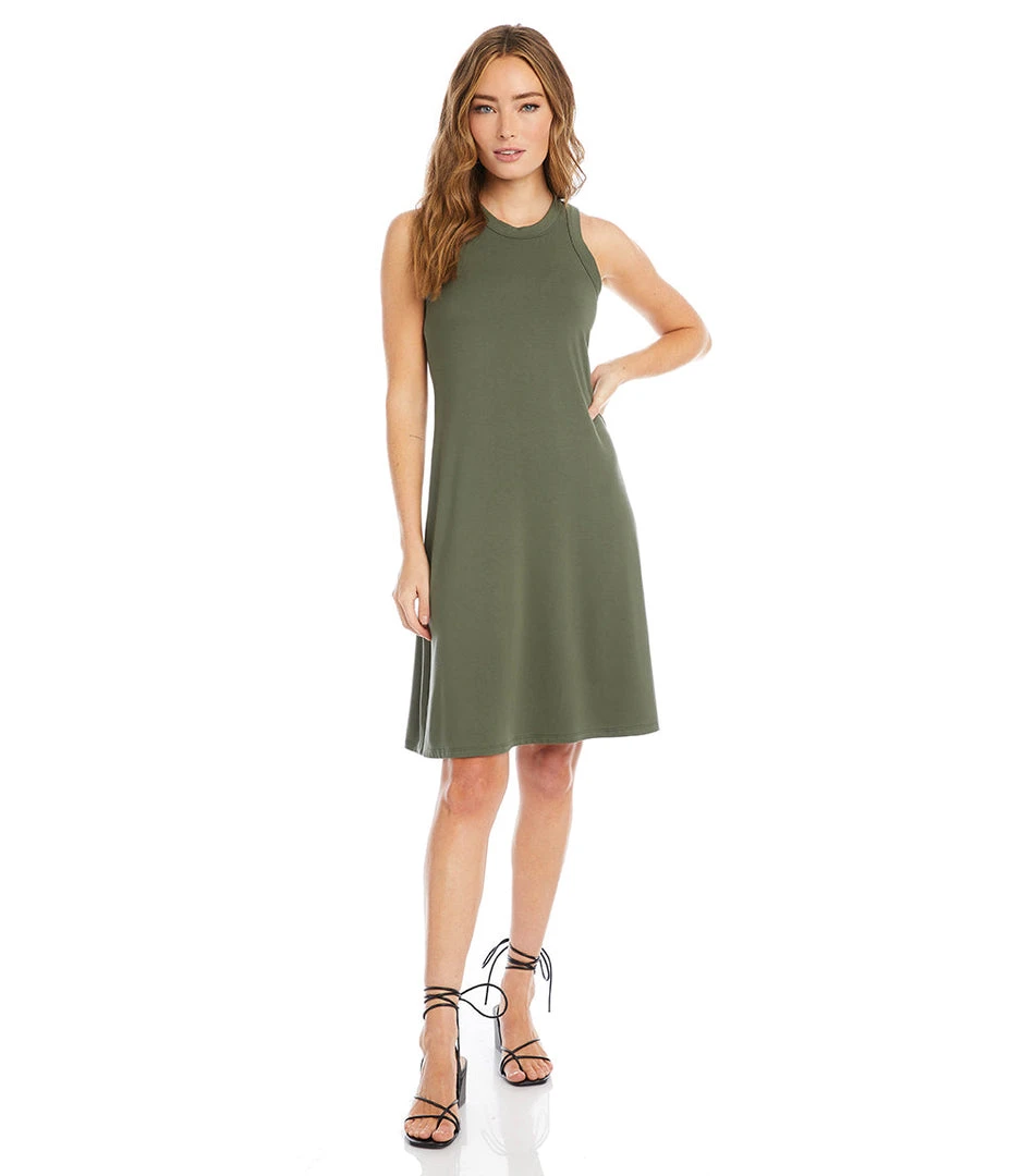 - Elevate your style with the Karen Kane High Neck A-Line Dress, featuring a sleek high neckline and a flattering A-line silhouette that suits all body types.