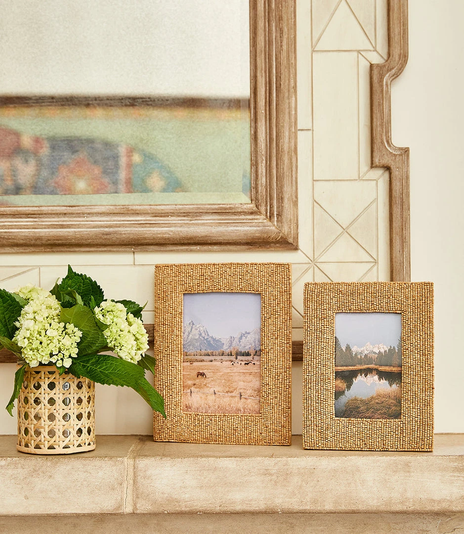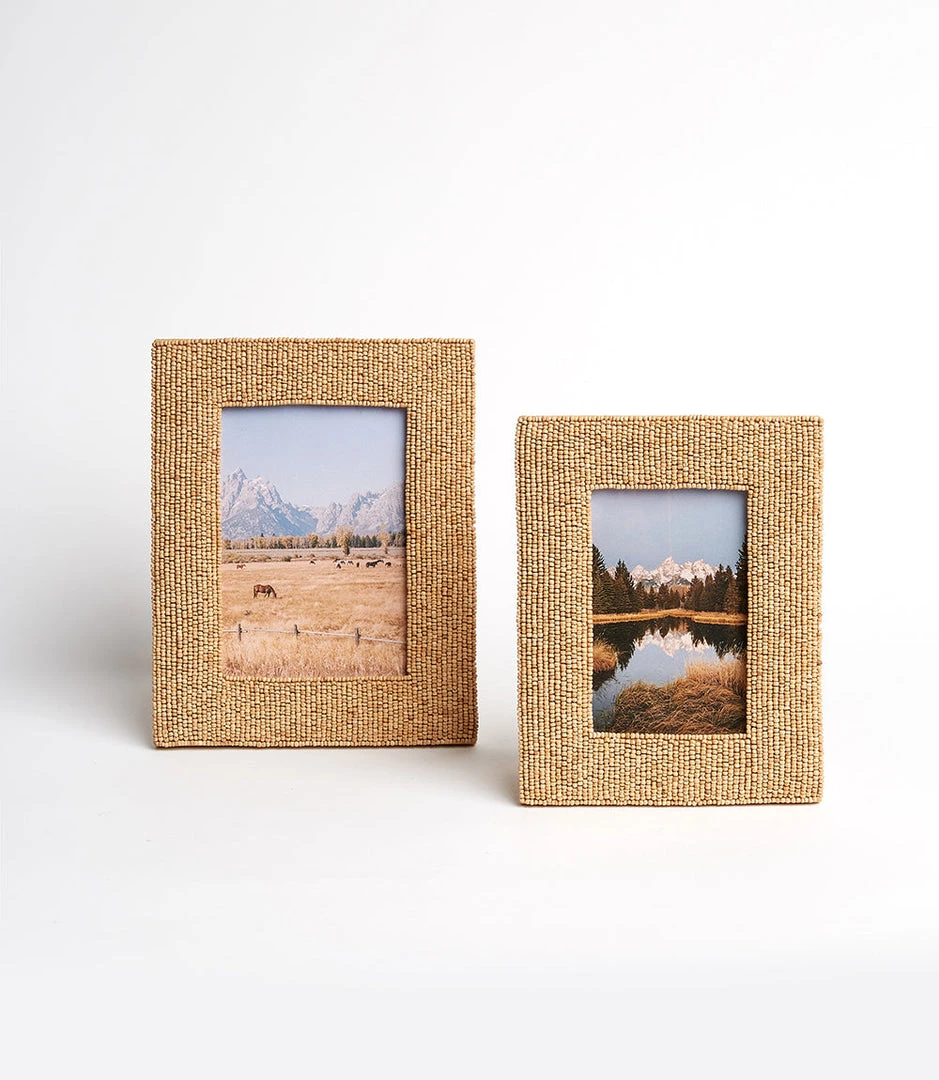 - Our picture frame is crafted with high-quality materials, ensuring long-lasting beauty and durability. The beaded design is handcrafted for a unique, artisanal look.