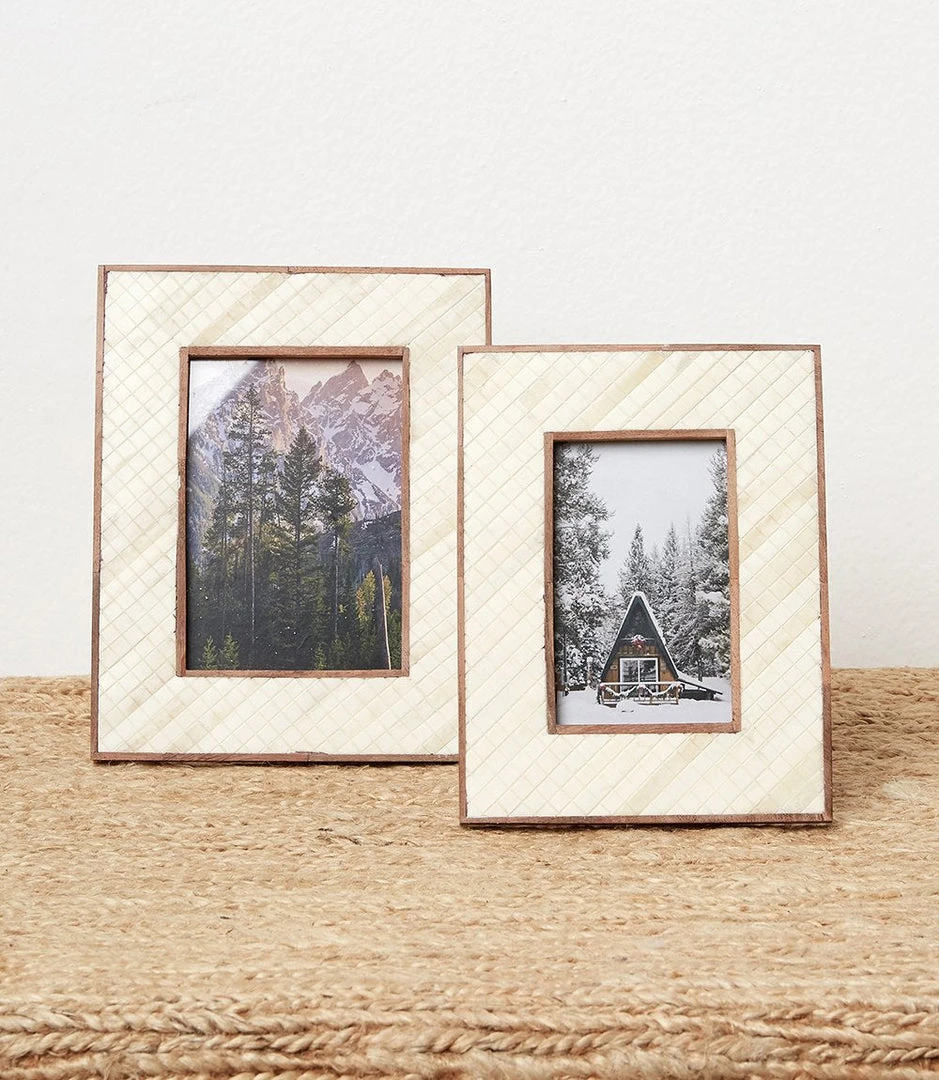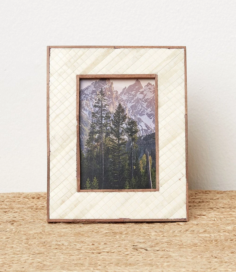 - The Karen Kane Home Bone & Wood Picture Frame combines natural bone and wood elements to create a unique and sophisticated look, perfect for any room in your home.