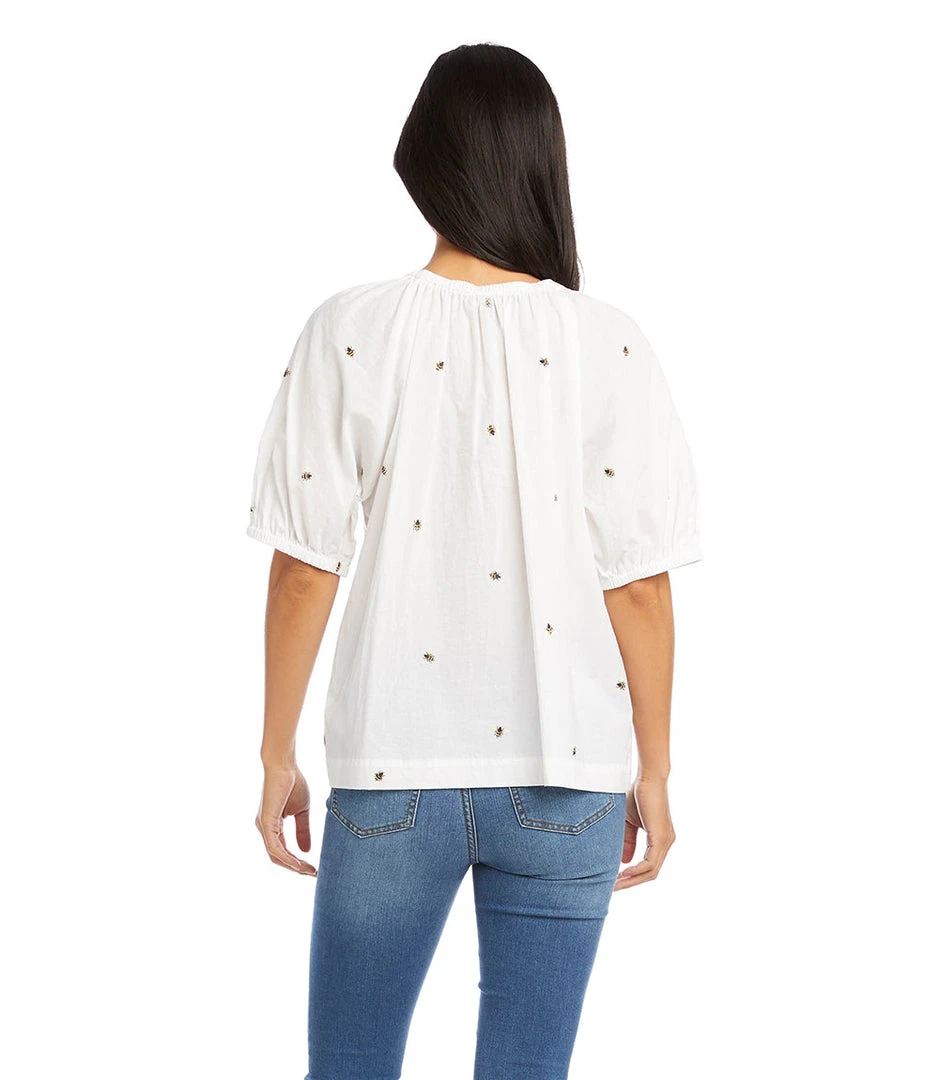 - Elevate your wardrobe with the Karen Kane Honey Bee Peasant Top. This stylish women’s blouse features a vibrant floral print and a relaxed peasant fit, making it perfect for any casual or summer occasion.