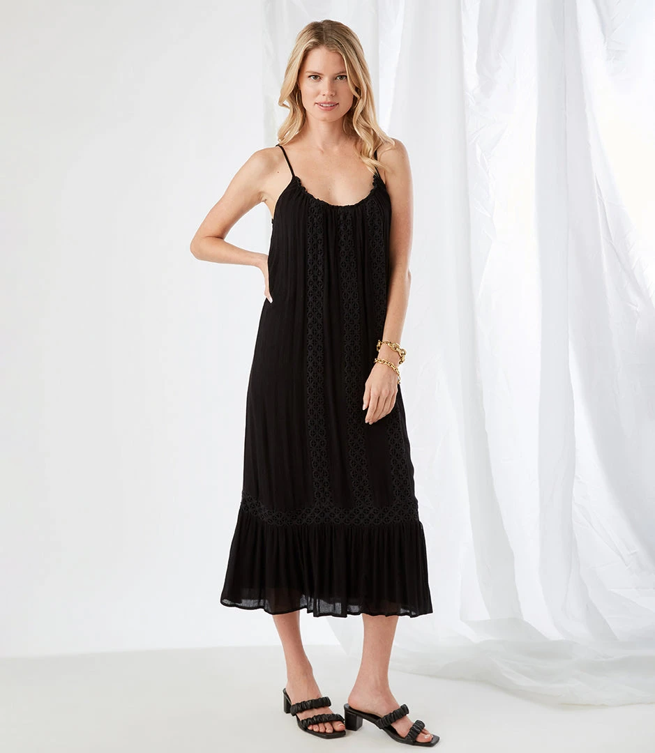 - Available in a range of sizes, the Karen Kane Lace Trim Midi Dress offers a tailored fit that enhances your natural silhouette. Pair it with heels or flats for a versatile style.