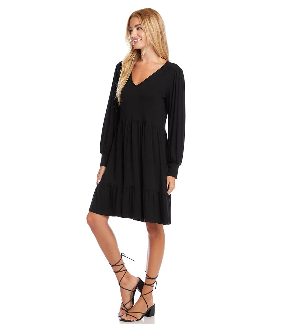 - Elevate your style with the Karen Kane Long Sleeve Tiered Dress. This beautifully designed dress features a tiered silhouette that flatters every figure.