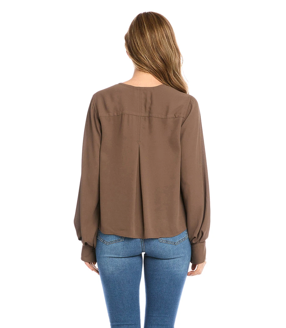 - Available in a variety of colors, the Karen Kane Split Placket Blouse is versatile and can be easily paired with skirts, pants, or jeans for a complete outfit. Perfect for any season!