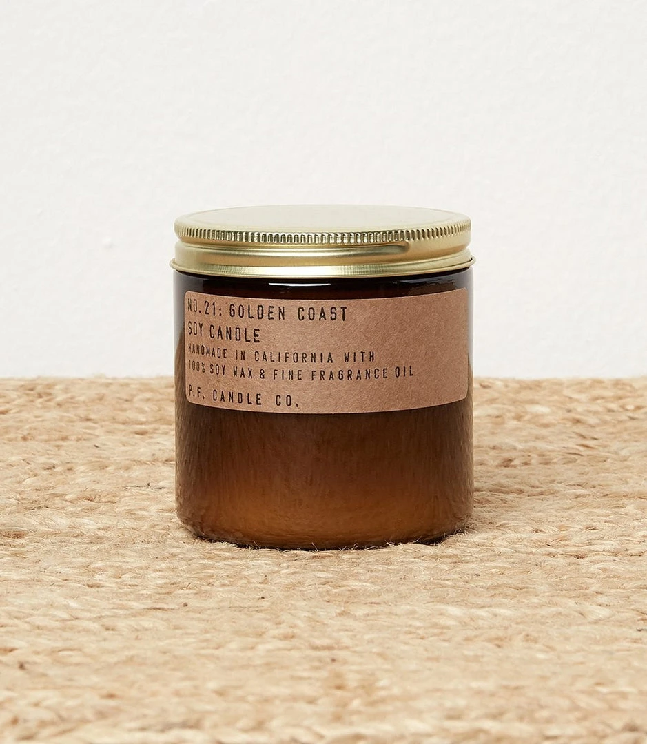 A candle that captures California’s essence: eucalyptus, sea salt, redwood, and palo santo. This 12.5 oz candle is hand-poured into apothecary-inspired amber jars with a brass lids. Made in California. Limited quantity available.