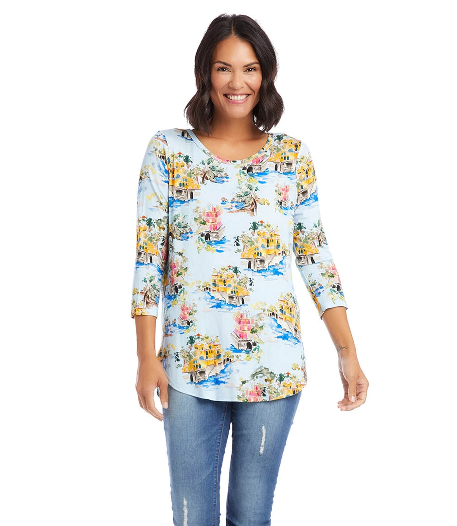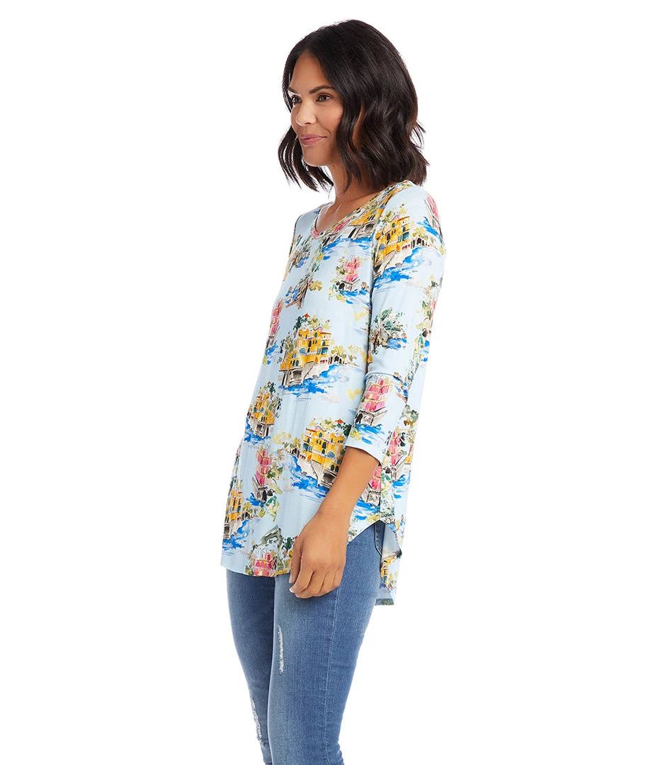 - Experience effortless style with the Karen Kane Petite 3/4 Sleeve Shirttail Tee. Designed specifically for petite women, this top offers a flattering fit and modern silhouette.