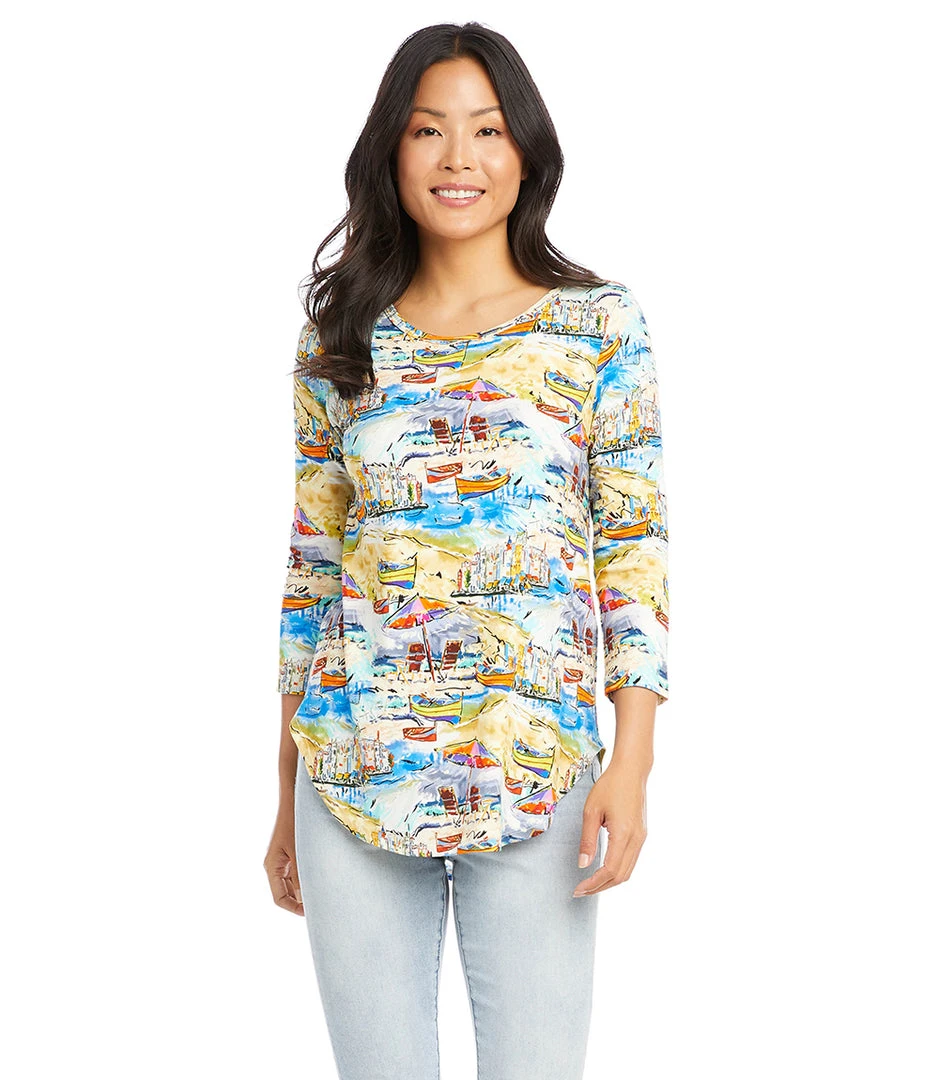 - Elevate your casual wardrobe with the Karen Kane Petite Size 3/4 Sleeve Shirttail Top. This stylish top features a unique shirttail hem and 3/4 sleeves, perfect for a chic and comfortable look.