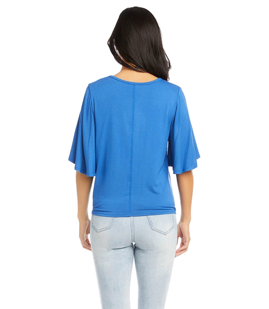 - Available in multiple colors, the Karen Kane Petite Size Flutter Sleeve Tie-Front Top is perfect for any season. Pair it with jeans, skirts, or trousers for a complete look.