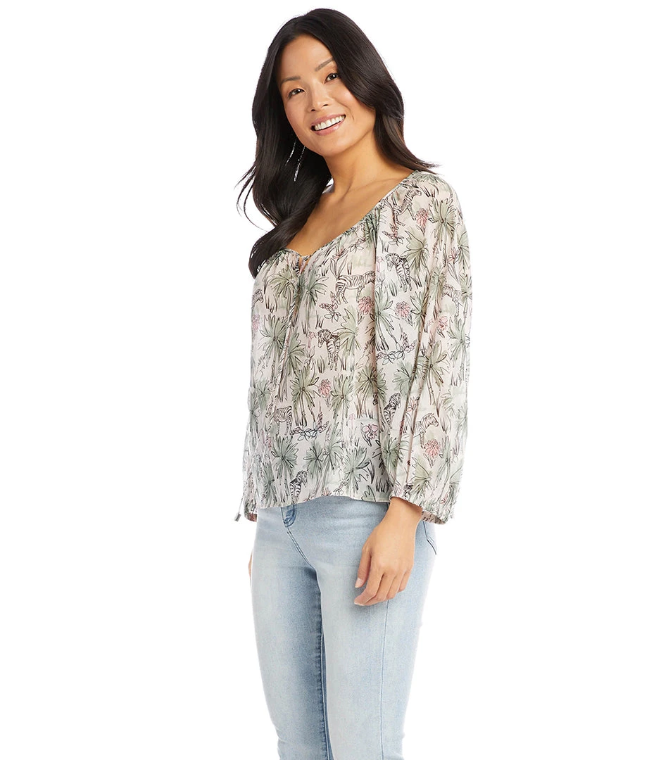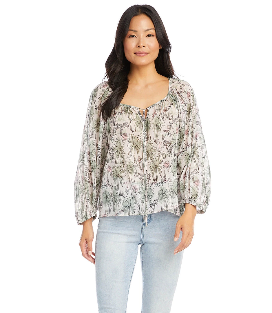 - Elevate your casual wardrobe with the Karen Kane Petite Size Peasant Top. Featuring a beautiful floral print, this blouse is perfect for a laid-back yet stylish look.