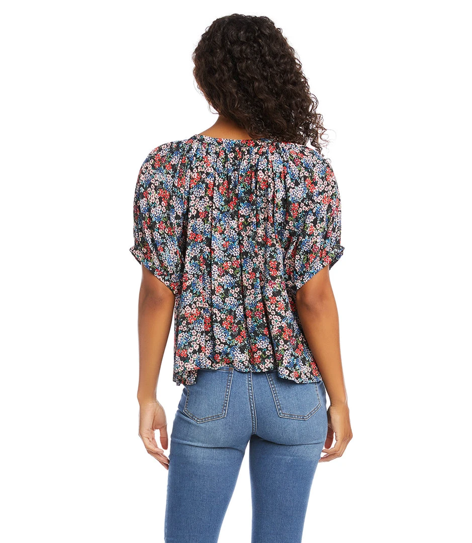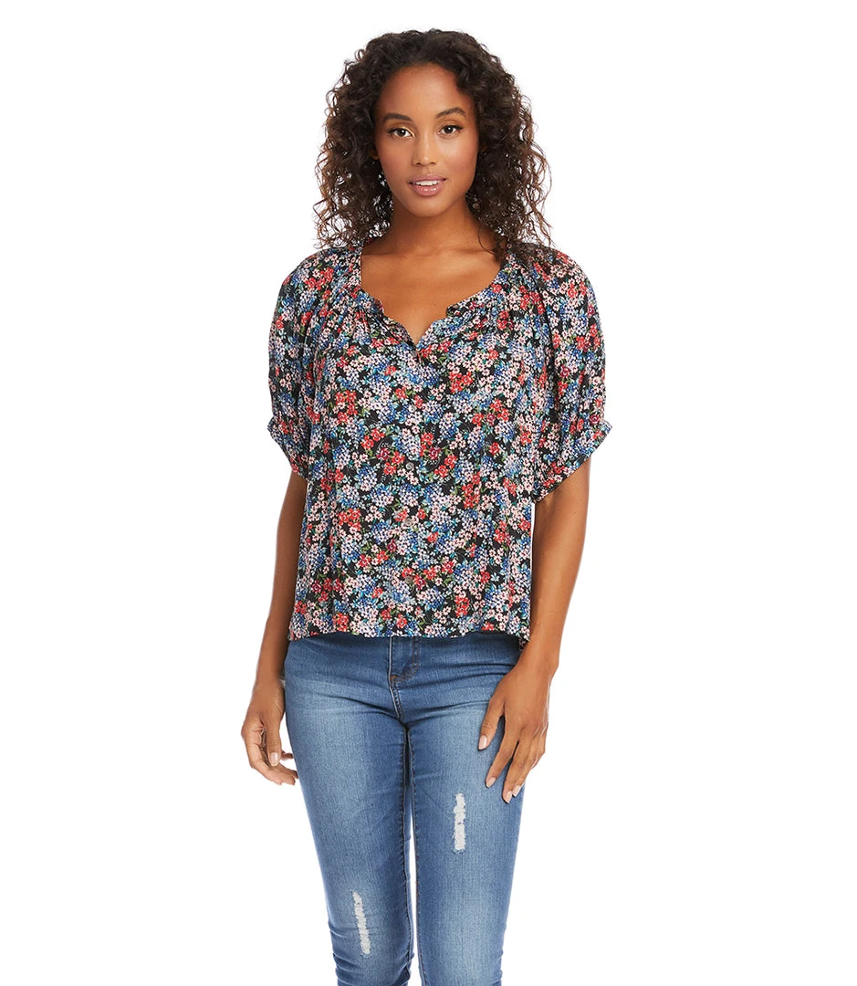 Karen Kane Petite Size Short Sleeve Peasant Top | Floral Print | Comfort Fit