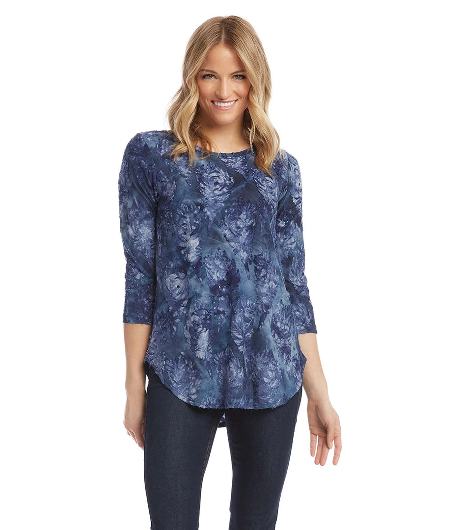 Karen Kane Petite Size Tie-Dye Burnout Shirttail Tee – Stylish & Comfortable Top for Petites