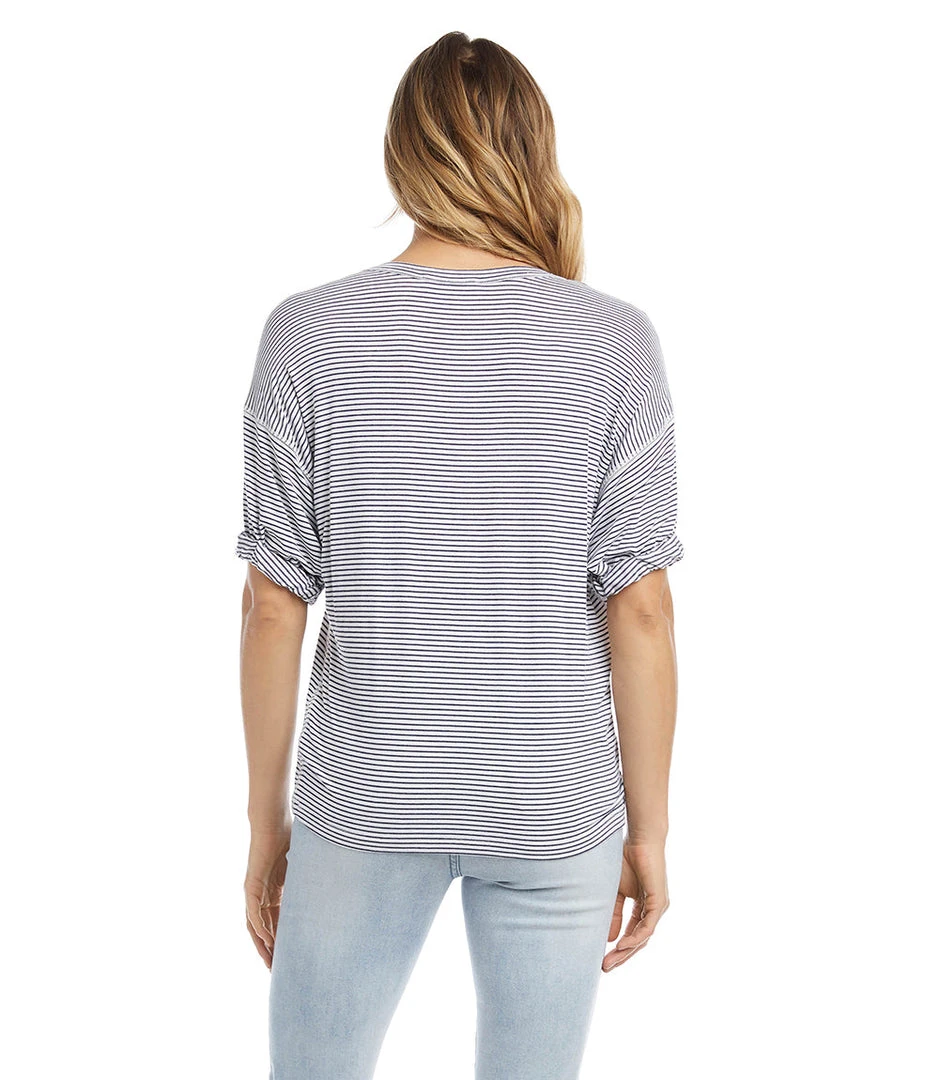 Karen Kane Petites Stripe Roll Sleeve Tee – Perfect Fit for Petite Sizes