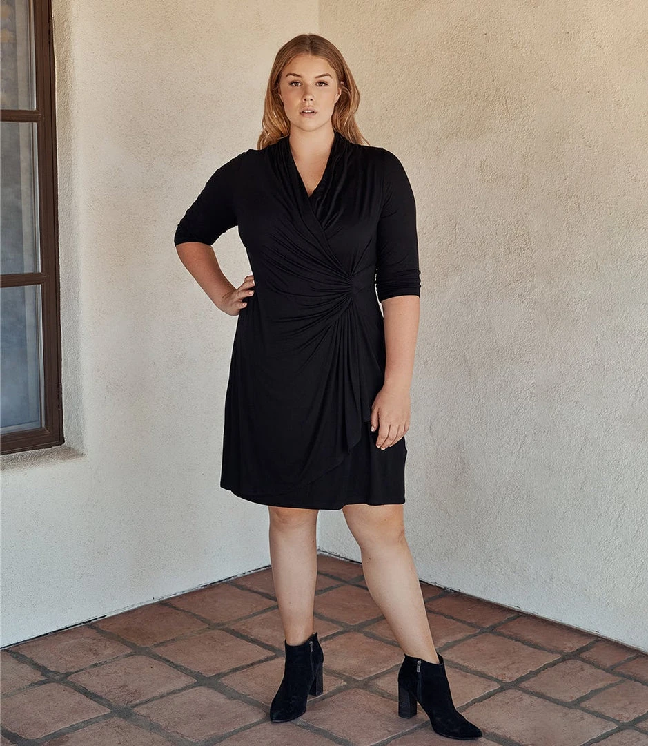Karen Kane Plus Size 3/4 Sleeve Cascade Wrap Dress | Flattering New Arrival