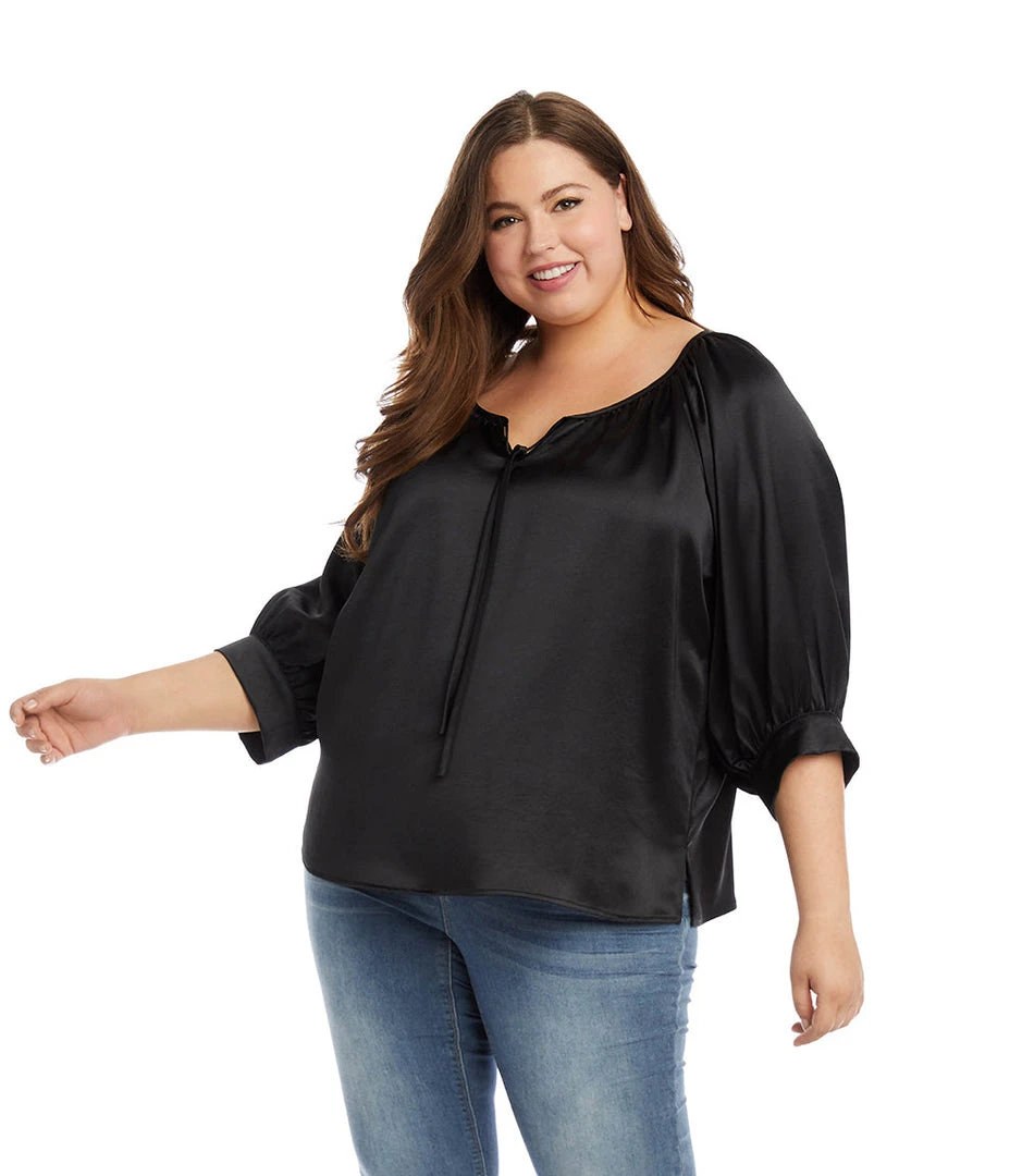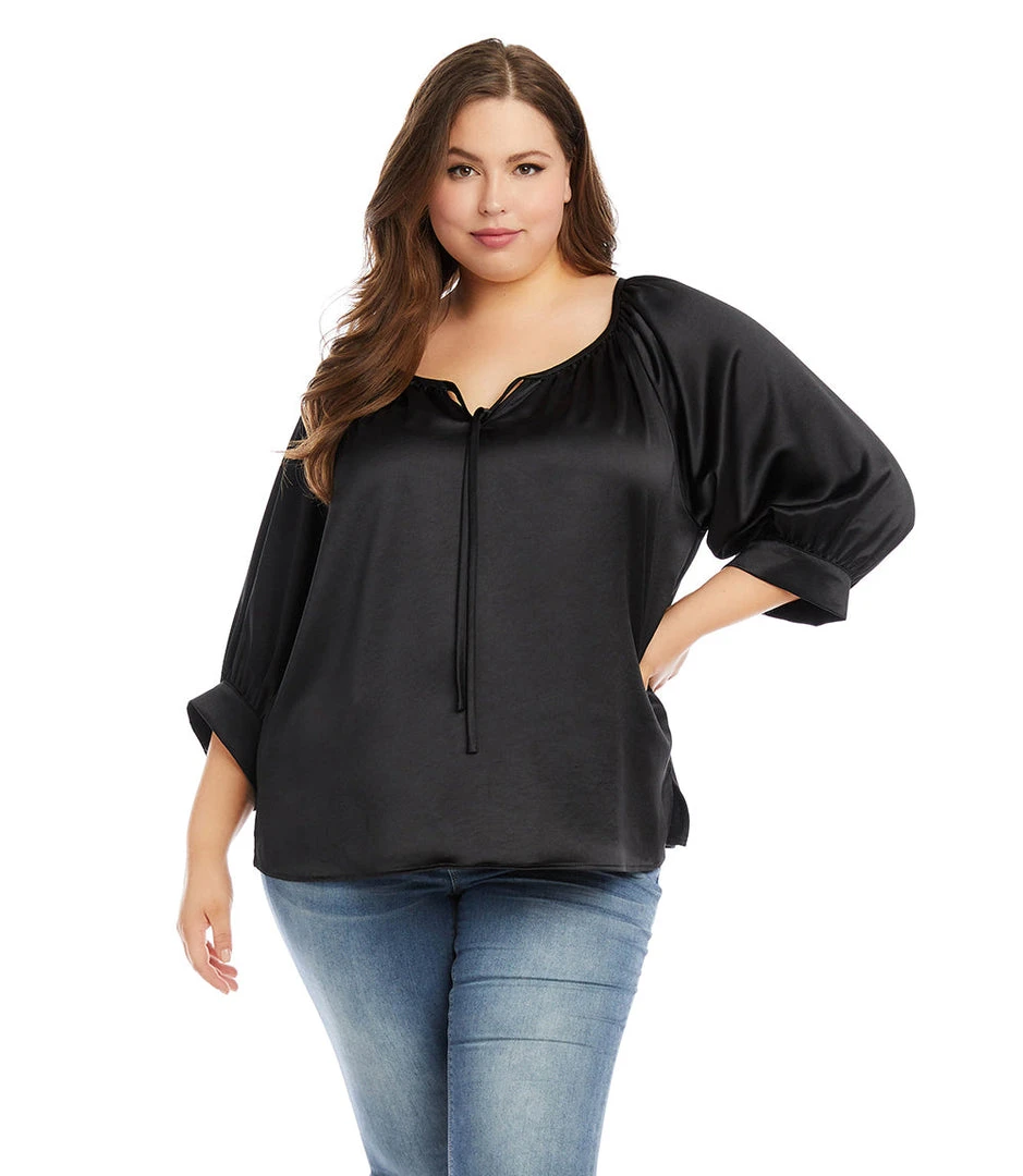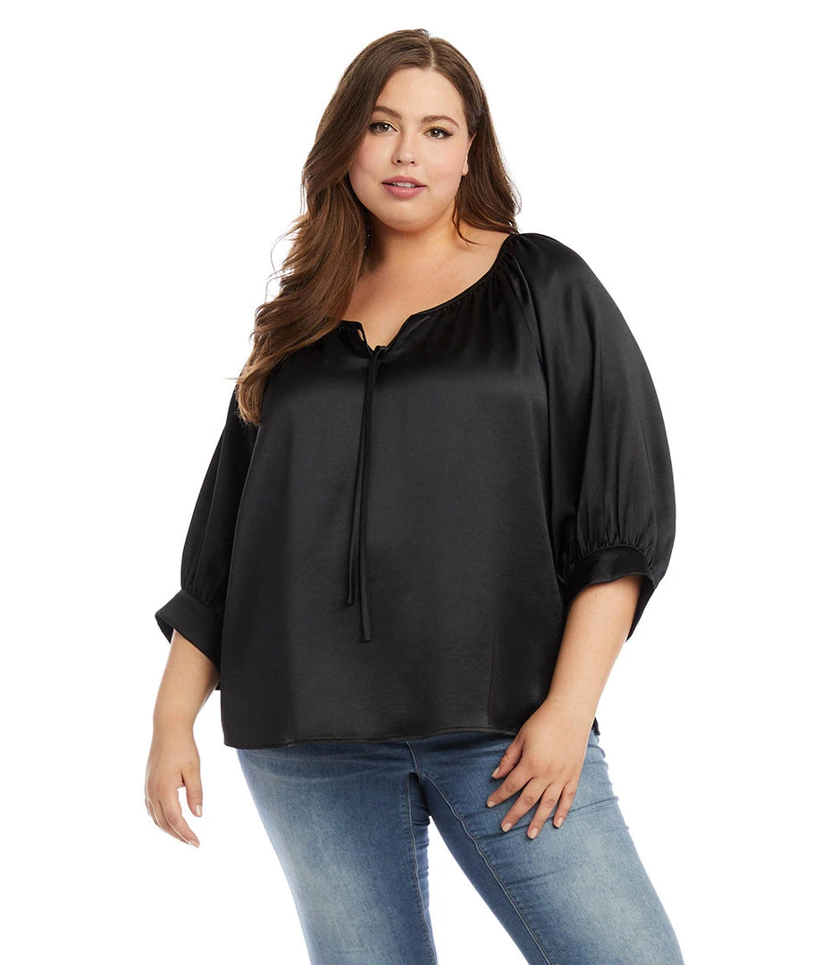 - Elevate your wardrobe with the Karen Kane Plus Size Blouson Sleeve Top. Designed for comfort and style, this top features a flattering blouson sleeve design that adds a touch of elegance to any outfit.
