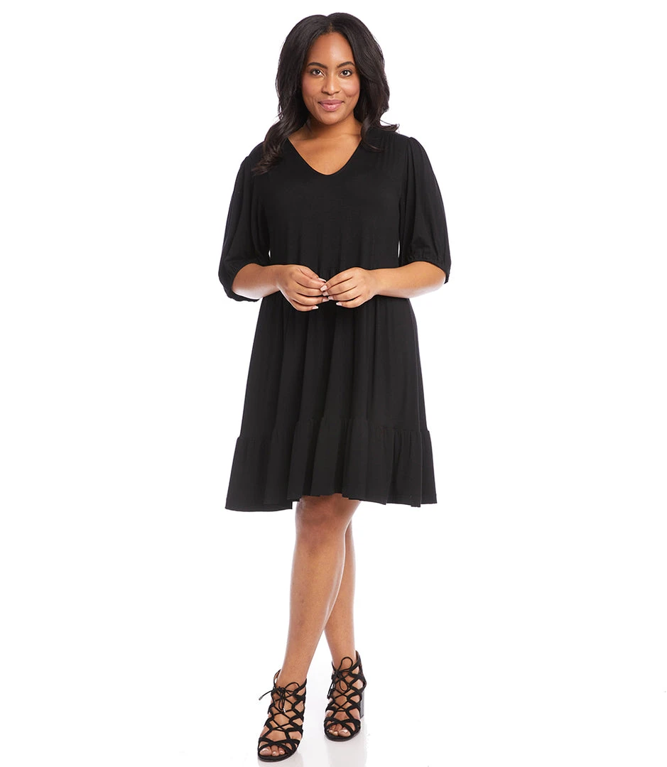 - Enjoy fast and reliable shipping with secure payment options. Our hassle-free return policy ensures you can shop with confidence. Add the Karen Kane Plus Size Poof Sleeve Tiered Dress to your cart today!