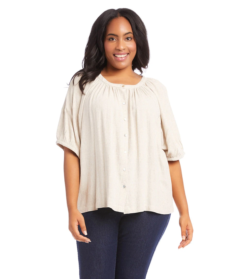 - Elevate your wardrobe with the Karen Kane Plus Size Short Sleeve Peasant Top. This new arrival combines comfort and style, making it a must-have for any season.