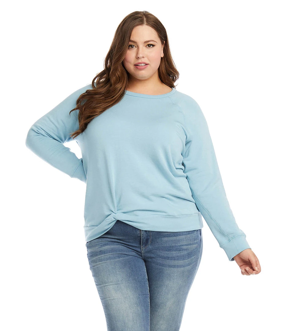 - Stay cozy and chic with the Karen Kane Plus Size Twist Hem Sweatshirt. Designed for plus-size women, this sweatshirt combines comfort and fashion effortlessly.