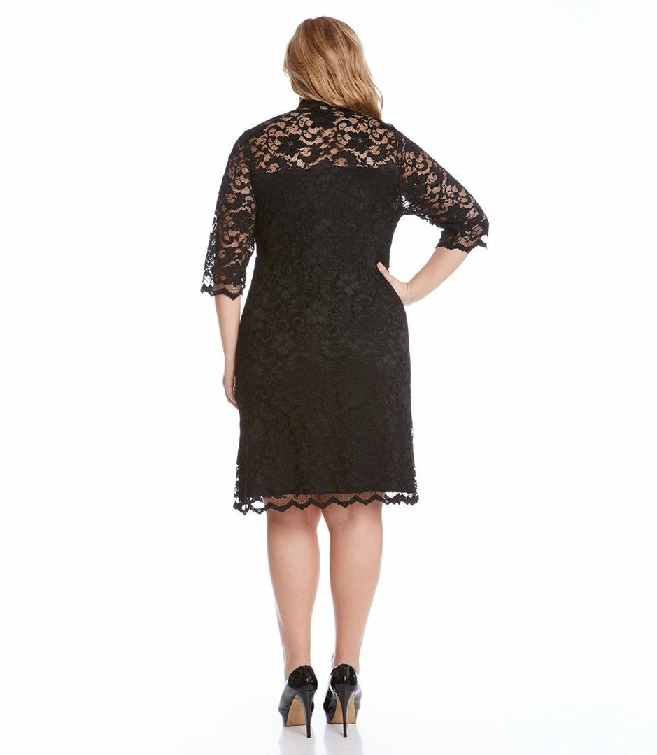 Karen Kane Plus Size V-Neck Scallop Lace Dress – Elegant & Comfortable Fit