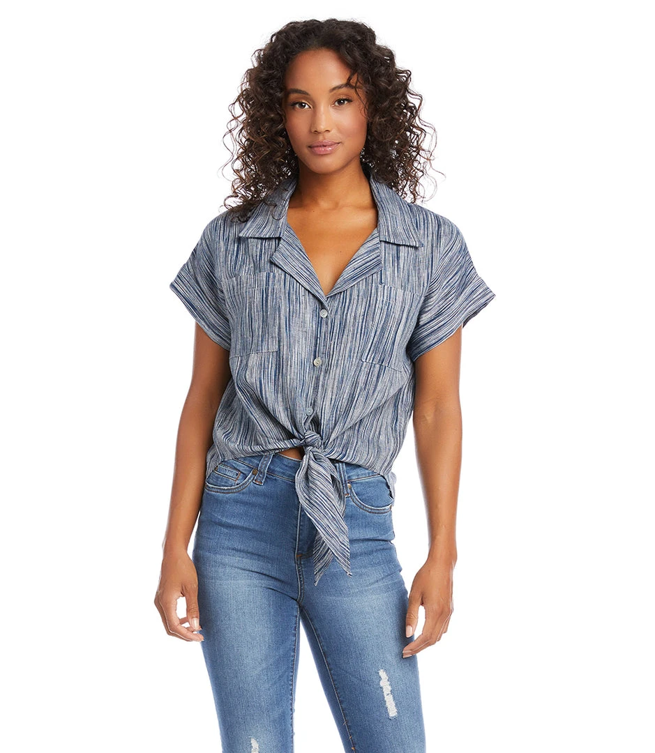 - Available in a range of colors to suit your personal style. The Karen Kane Roll Sleeve Tie-Front Top is easy to pair with skirts, jeans, or trousers for a complete outfit.