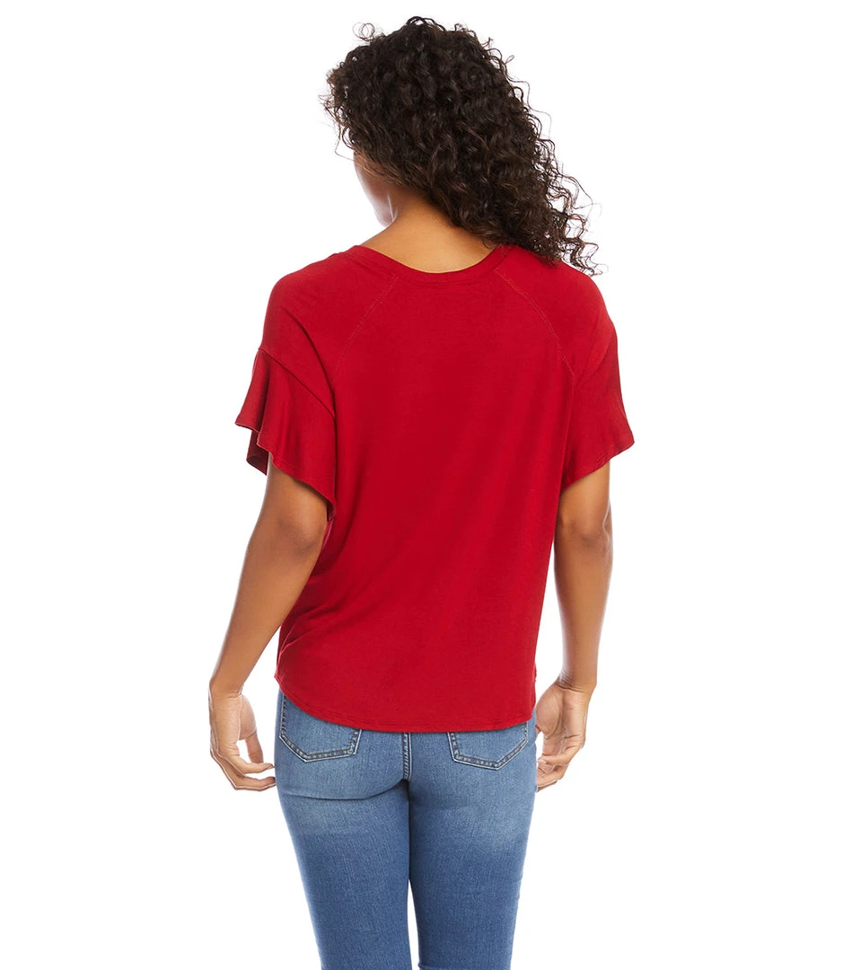 - Elevate your wardrobe with the Karen Kane Ruffle Sleeve Top, featuring elegant ruffled sleeves and a flattering fit for all body types.
