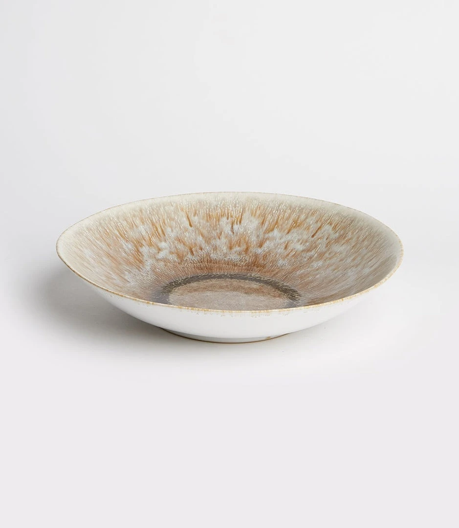Crystal-toned reactive glaze creates a stunning ombre look on this serving bowl. This plate will add a beautiful pop of color to your tablespace. Due to the natural characteristics of this item, each piece will have variances, no two are the same.