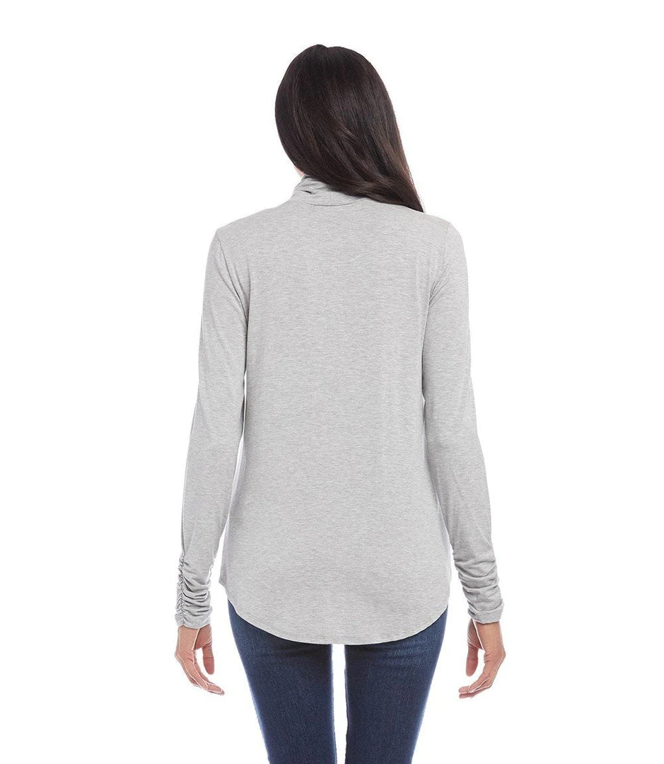 - Experience the perfect combination of elegance and comfort with the Karen Kane Shirred Sleeve Turtleneck Top. Ideal for both casual outings and formal gatherings.