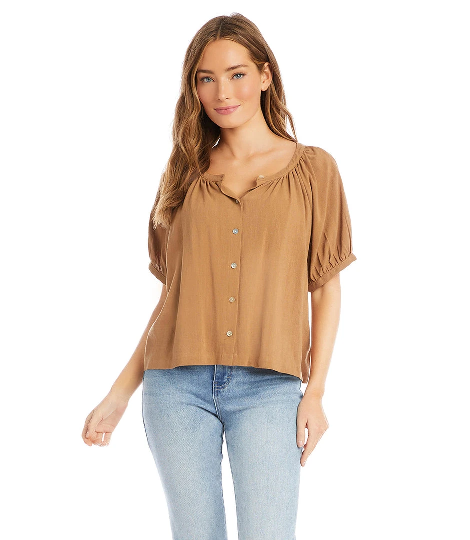 - Elevate your casual wardrobe with the Karen Kane Short Sleeve Peasant Top. This flowy blouse offers a relaxed fit and a chic peasant style, making it a versatile piece for any occasion.