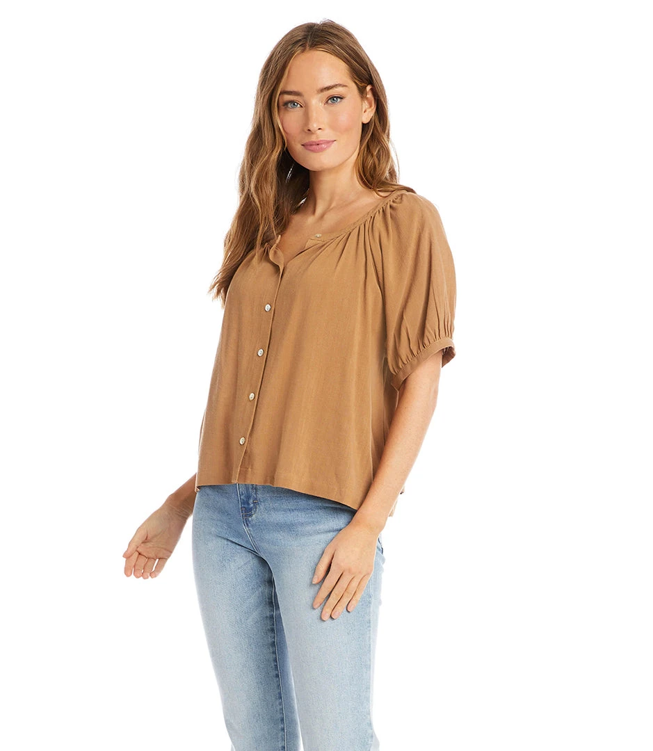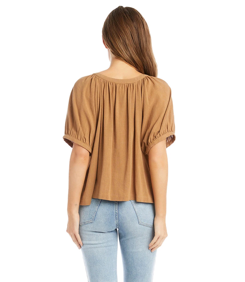 Karen Kane Short Sleeve Peasant Top | Flowy Women’s Blouse | New Arrivals in Tops