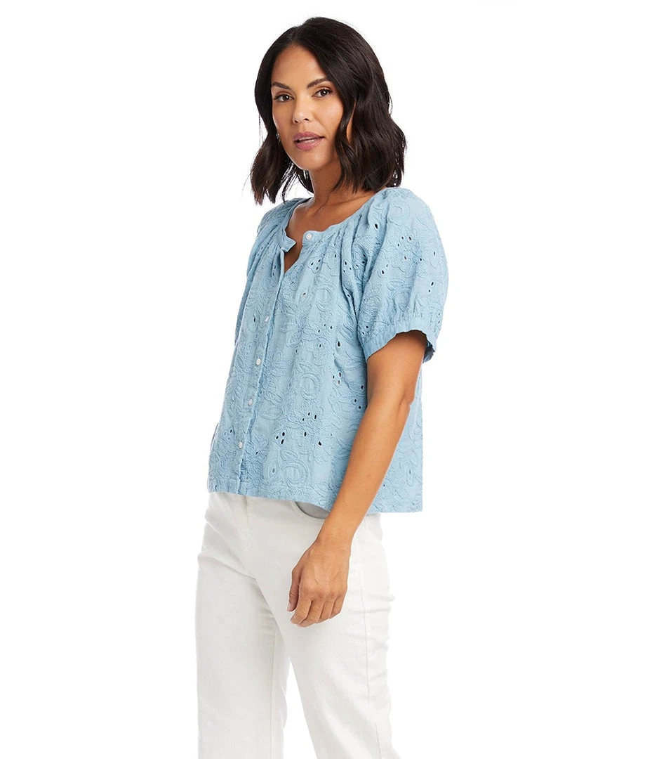 - Elevate your casual wardrobe with the Karen Kane Short Sleeve Peasant Top. This stylish top features a relaxed fit, making it perfect for everyday wear.
