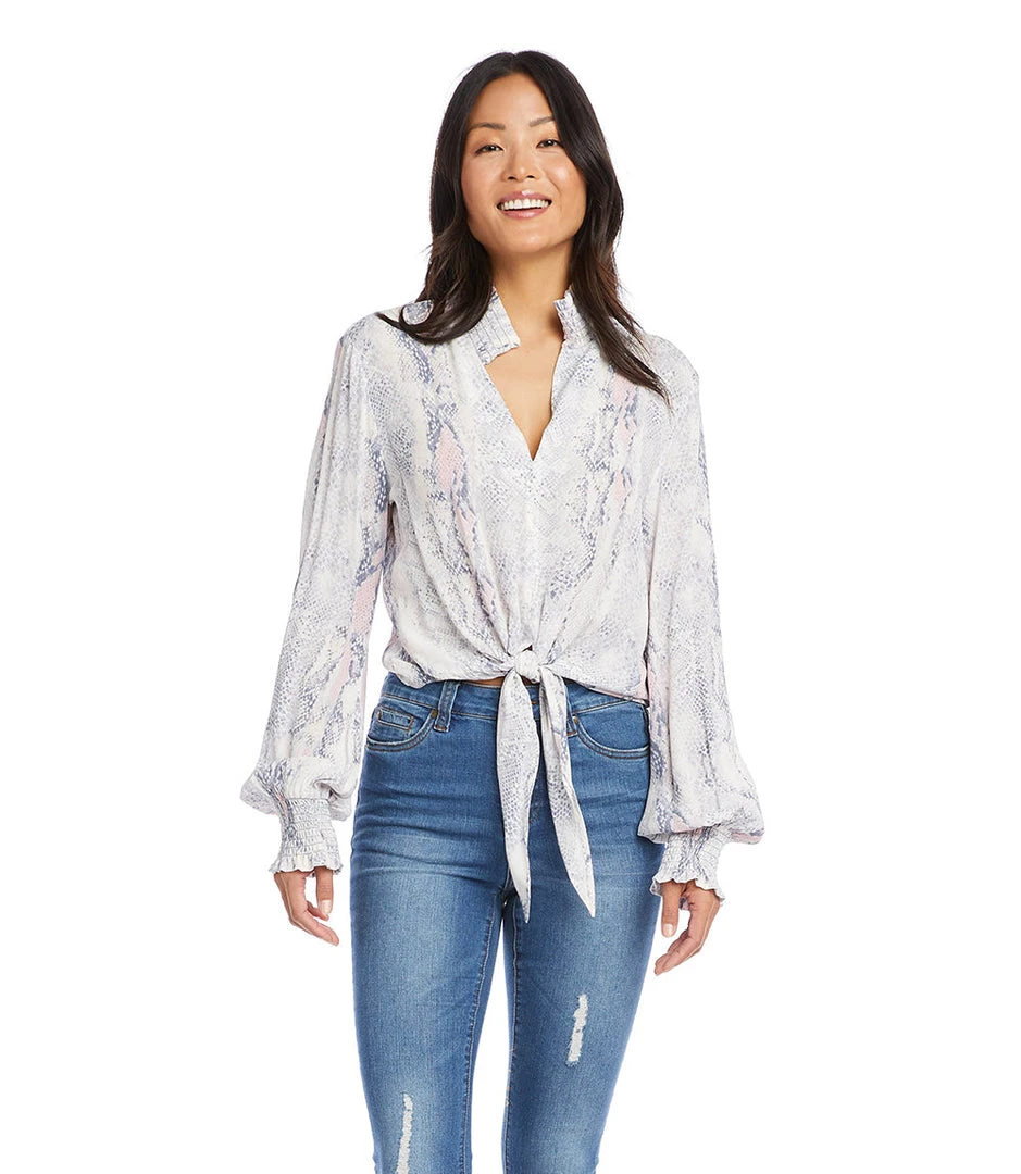 - Shop with confidence! We offer secure payment options, fast shipping, and easy returns. Add the Karen Kane Smocked Tie-Front Top to your cart today and experience effortless style.